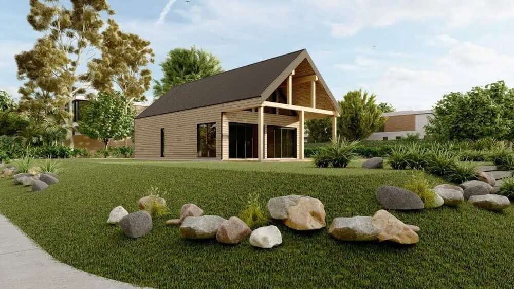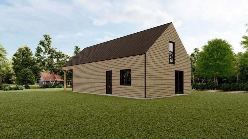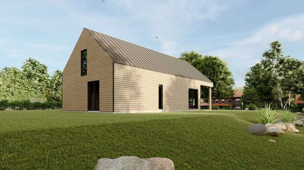C80 ist ein Fertighaus von Dolena, einem Hersteller von Fertighäusern mit Sitz in Litauen. Dieses Haus bietet 80 m² Wohnfläche, mit 2 Schlafzimmern und 1 Badezimmer.