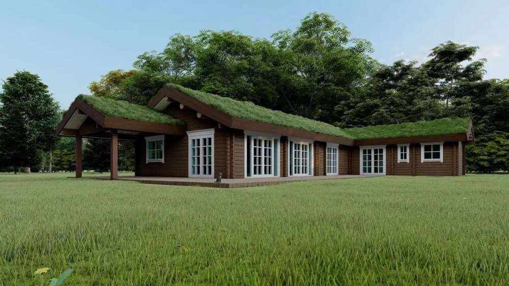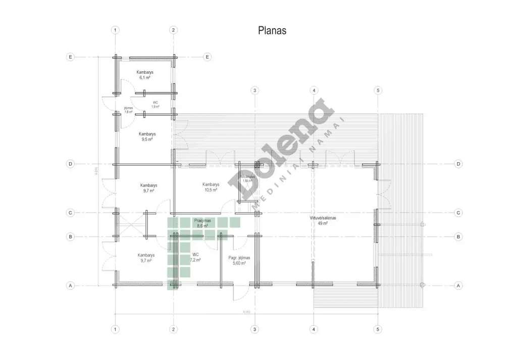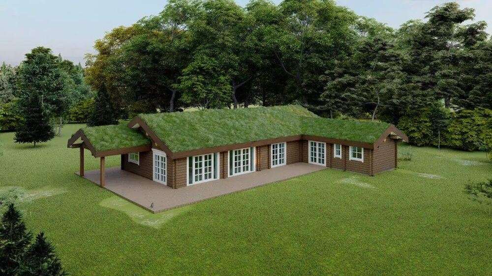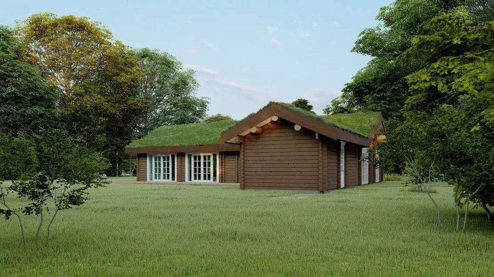 DK130 ist ein Holzhaus von Dolena, einem Hersteller von Fertighäusern mit Sitz in Litauen. Dieses Holzhaus bietet 130 m² Wohnfläche mit 5 Schlafzimmern und 2 Bädern.