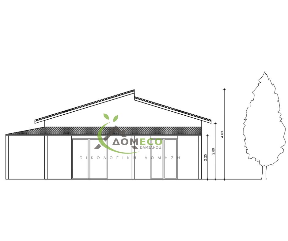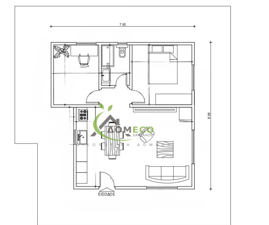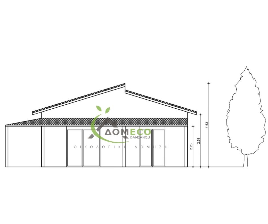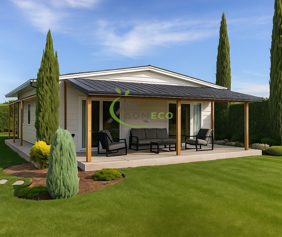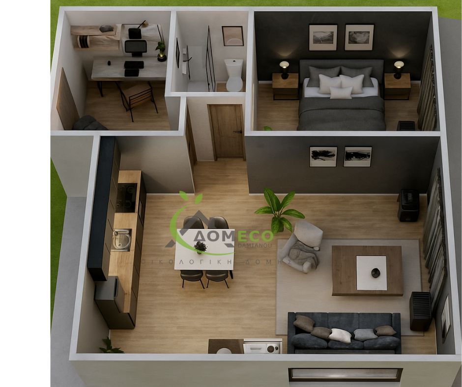 EcoHouse ist ein Modulhaus von Domeco, einem Hersteller von Fertighäusern mit Sitz in Griechenland. Dieses Modulhaus bietet 60 m² Wohnfläche, 2 Schlafzimmer und 1 Badezimmer.