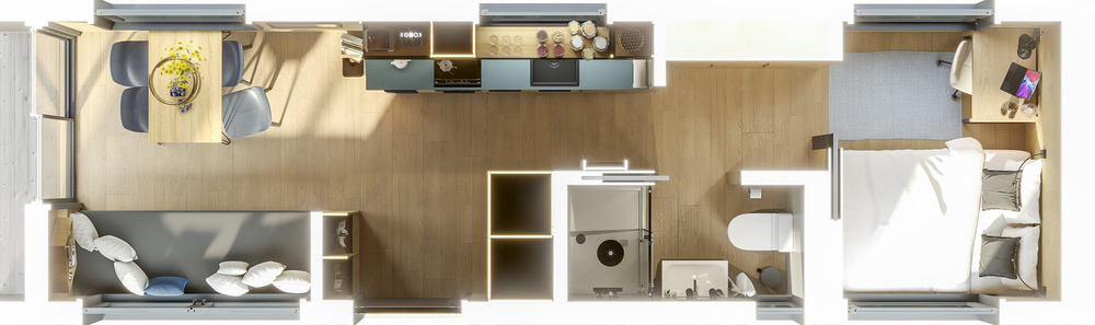 Heimdal ist ein winziges Haus, das von Forward Homes, einem Hersteller von Fertighäusern mit Sitz in Polen, gebaut wurde. Dieses Fertighaus bietet 32,2 m² Wohnfläche mit 1 Schlafzimmer und 1 Badezimmer.