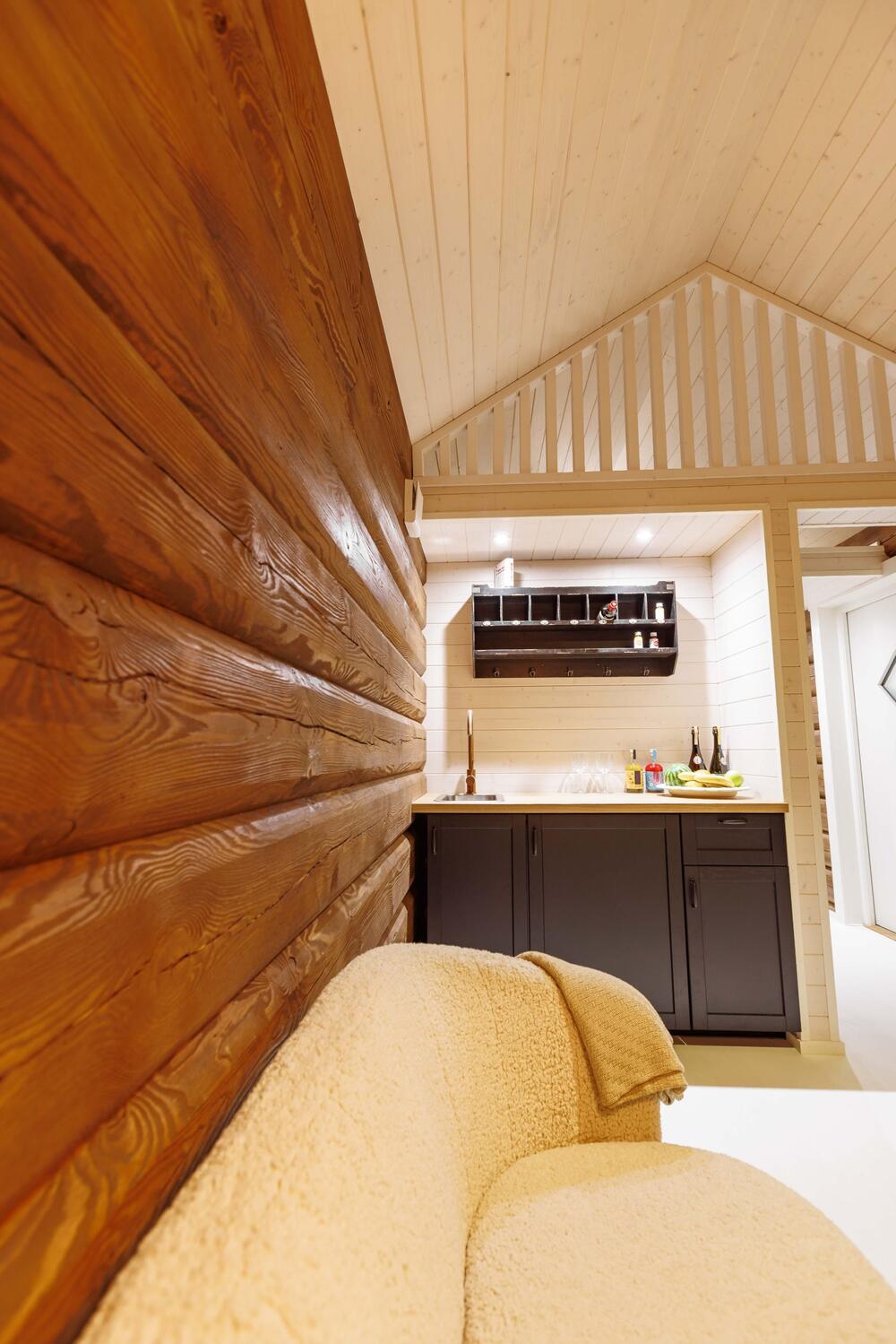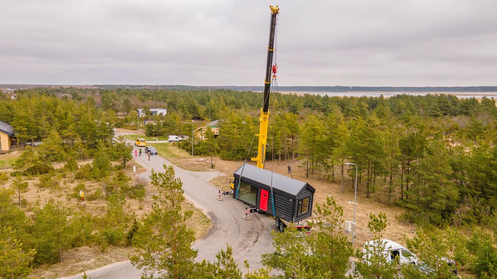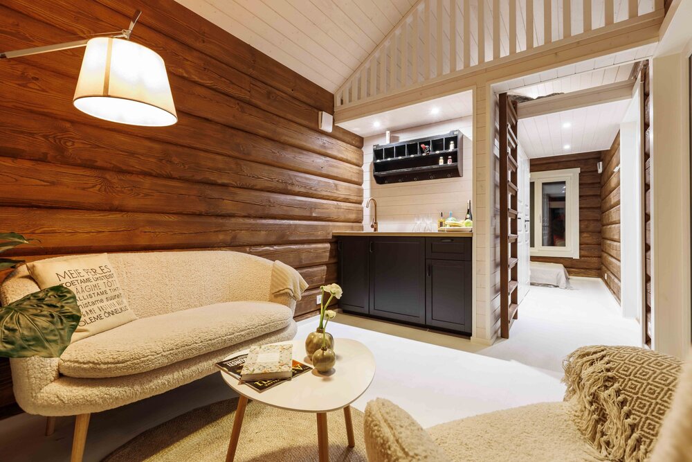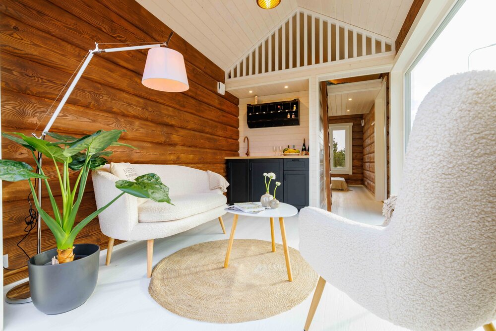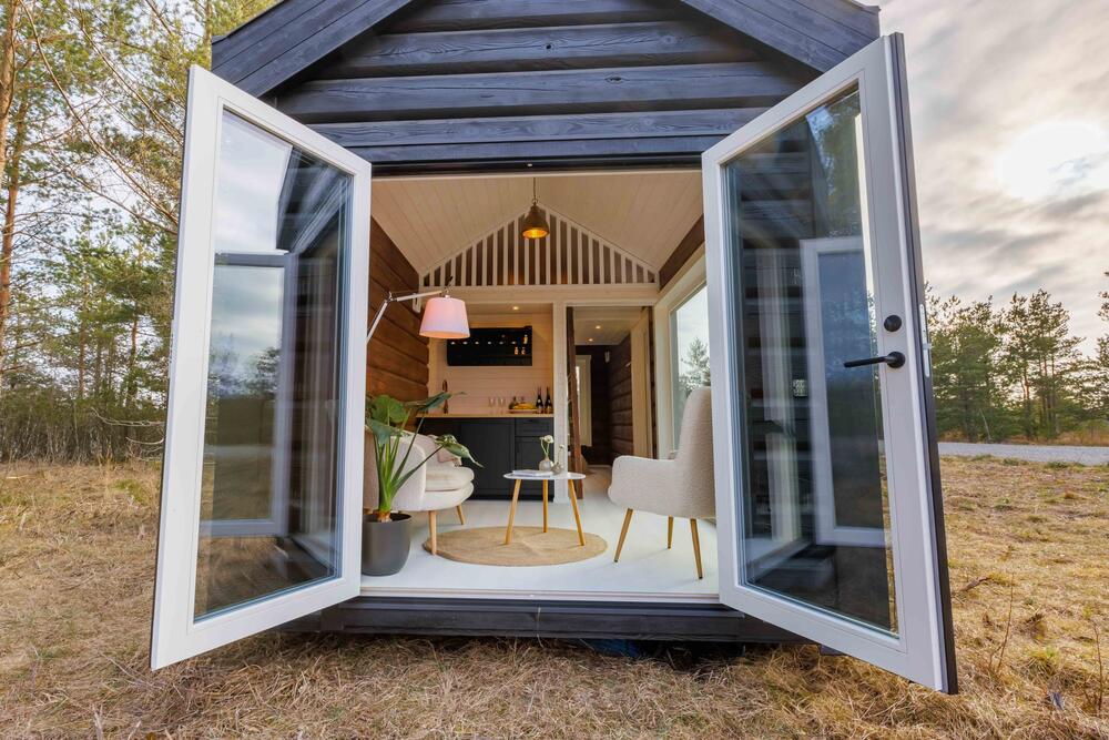 HyggeHut ist ein vorgefertigtes Blockhaus von HyggeHut, einem Hersteller von Fertighäusern mit Sitz in Estland. Dieses Fertighaus bietet 27 m² Wohnfläche mit einem Schlafzimmer und einem Badezimmer.