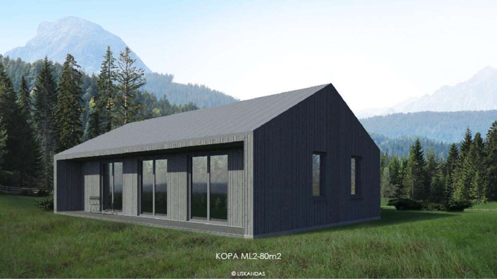 ML2-80 ist ein Haus, das von Liskandas, einem Hersteller von Fertighäusern in Litauen, gebaut wurde. Dieses Fertighaus bietet 80 m² Wohnfläche mit 3 Schlafzimmern und 1 Badezimmer.
