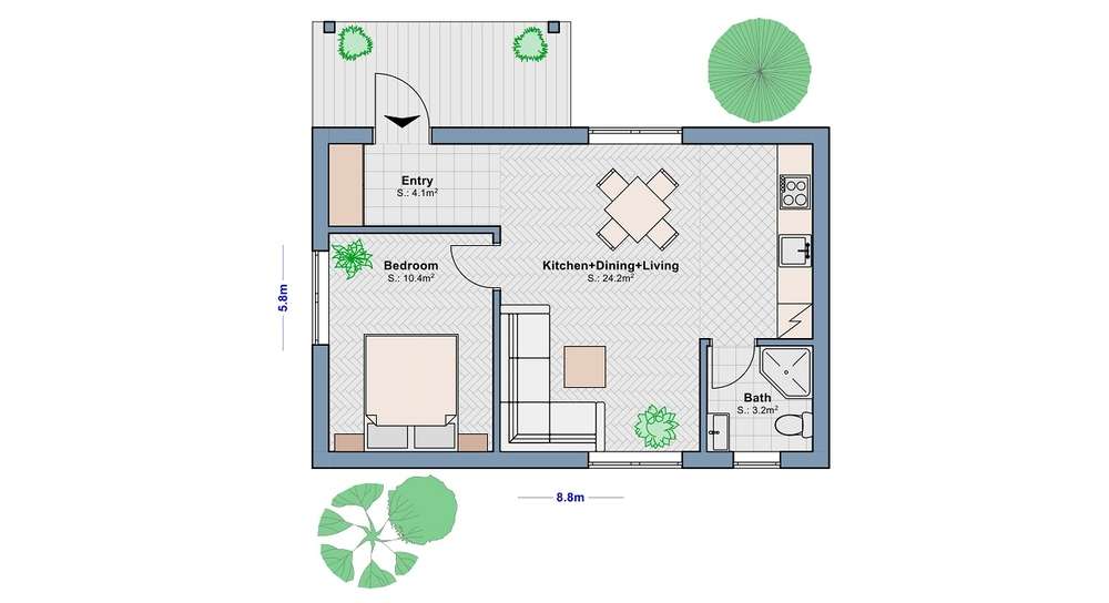 Modular house 51 ist ein Haus gebaut von Norges Hus Modular Building, einem Hersteller von Fertighäusern mit Sitz in Estland. Dieses Modulhaus bietet 42,5 m² Wohnfläche mit 1 Schlafzimmer und 1 Badezimmer.