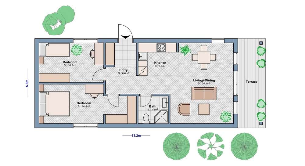 Modular house 63 ist ein Haus gebaut von Norges Hus Modular Building, einem Hersteller von Fertighäusern mit Sitz in Estland. Dieses Modulhaus bietet 54,5 m² Wohnfläche mit 1 Schlafzimmer und 1 Badezimmer.