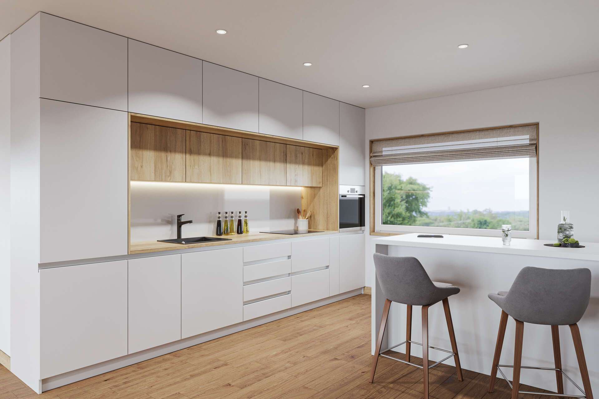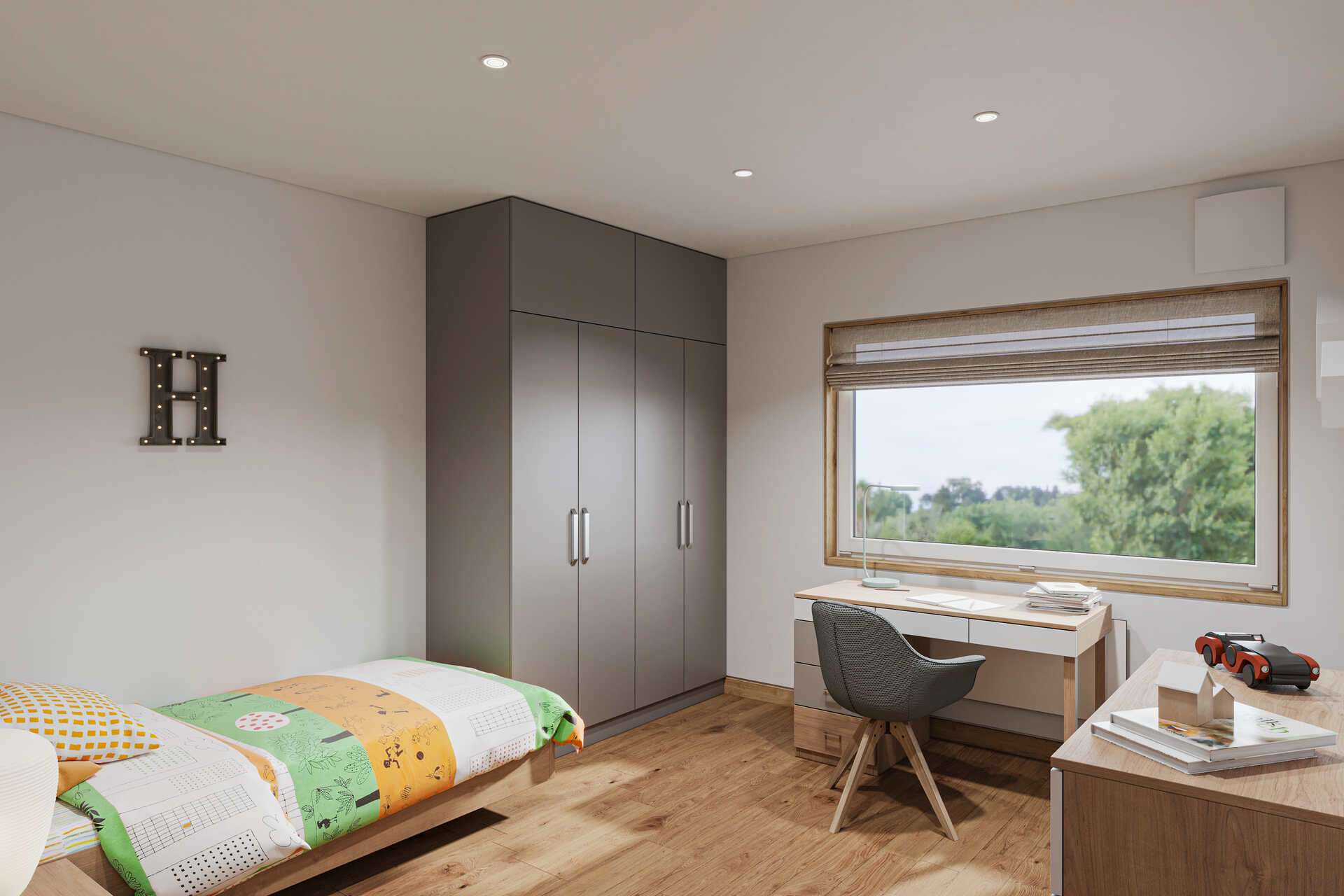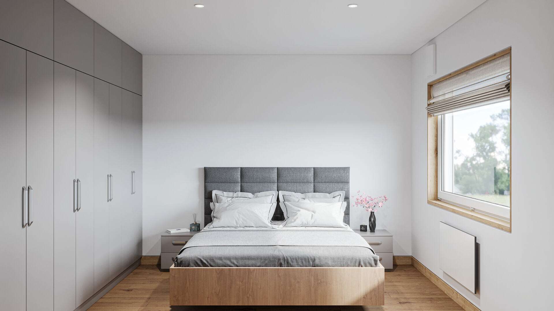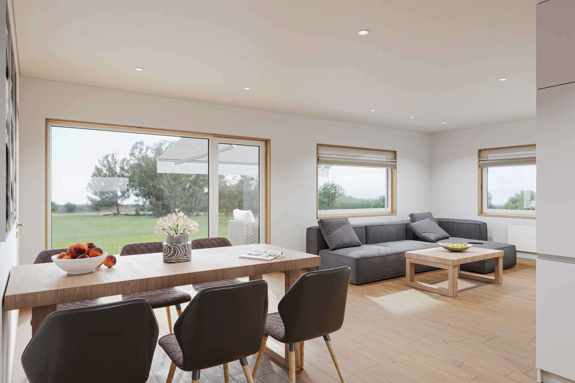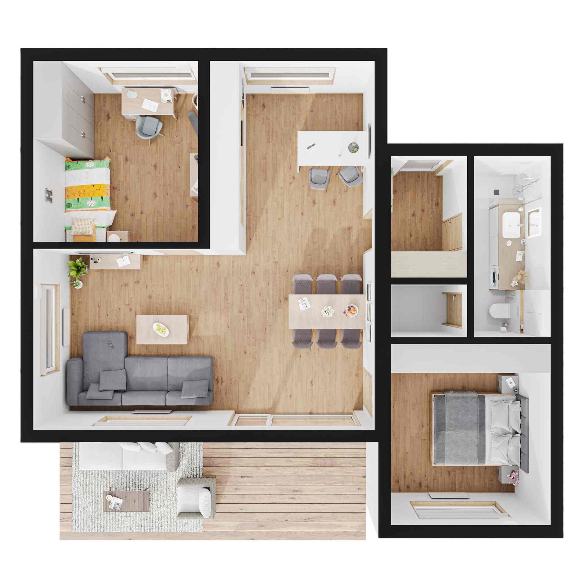 TRIOMOD 94 V3 ist ein modulares Haus von NOVA TEQ, einem Hersteller von Fertighäusern mit Sitz in der Ukraine. Dieses Modulhaus bietet 77 m² Wohnfläche, zwei Schlafzimmer und ein Badezimmer.