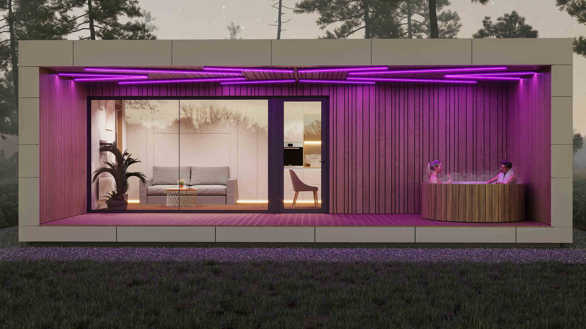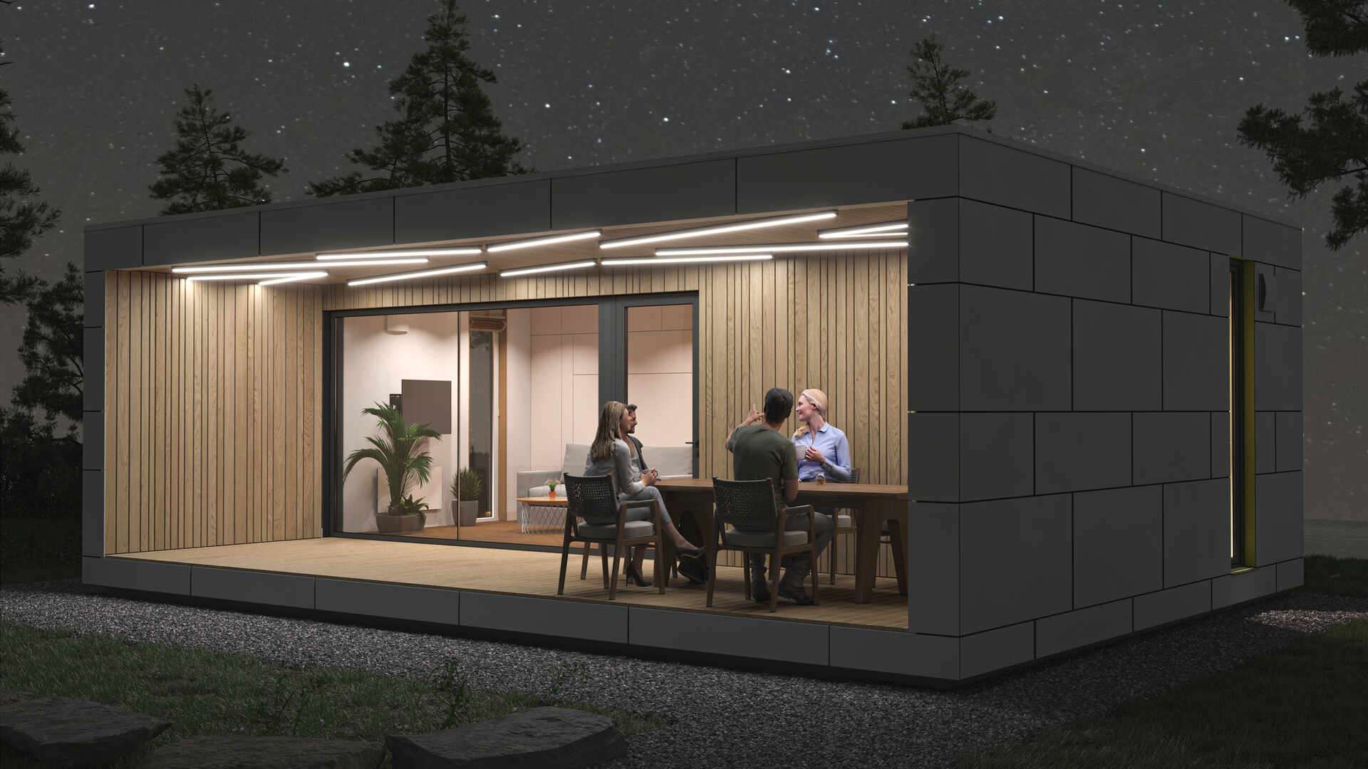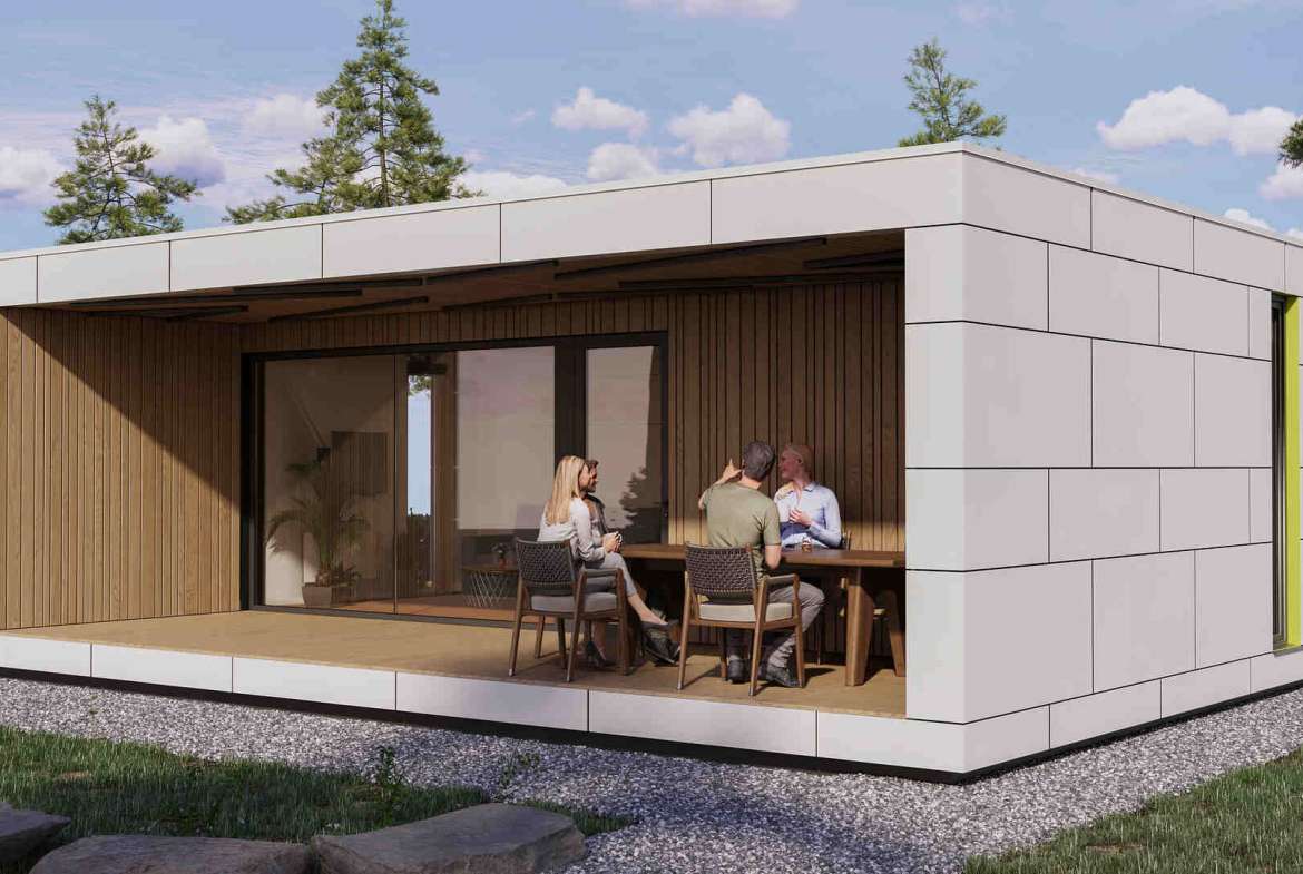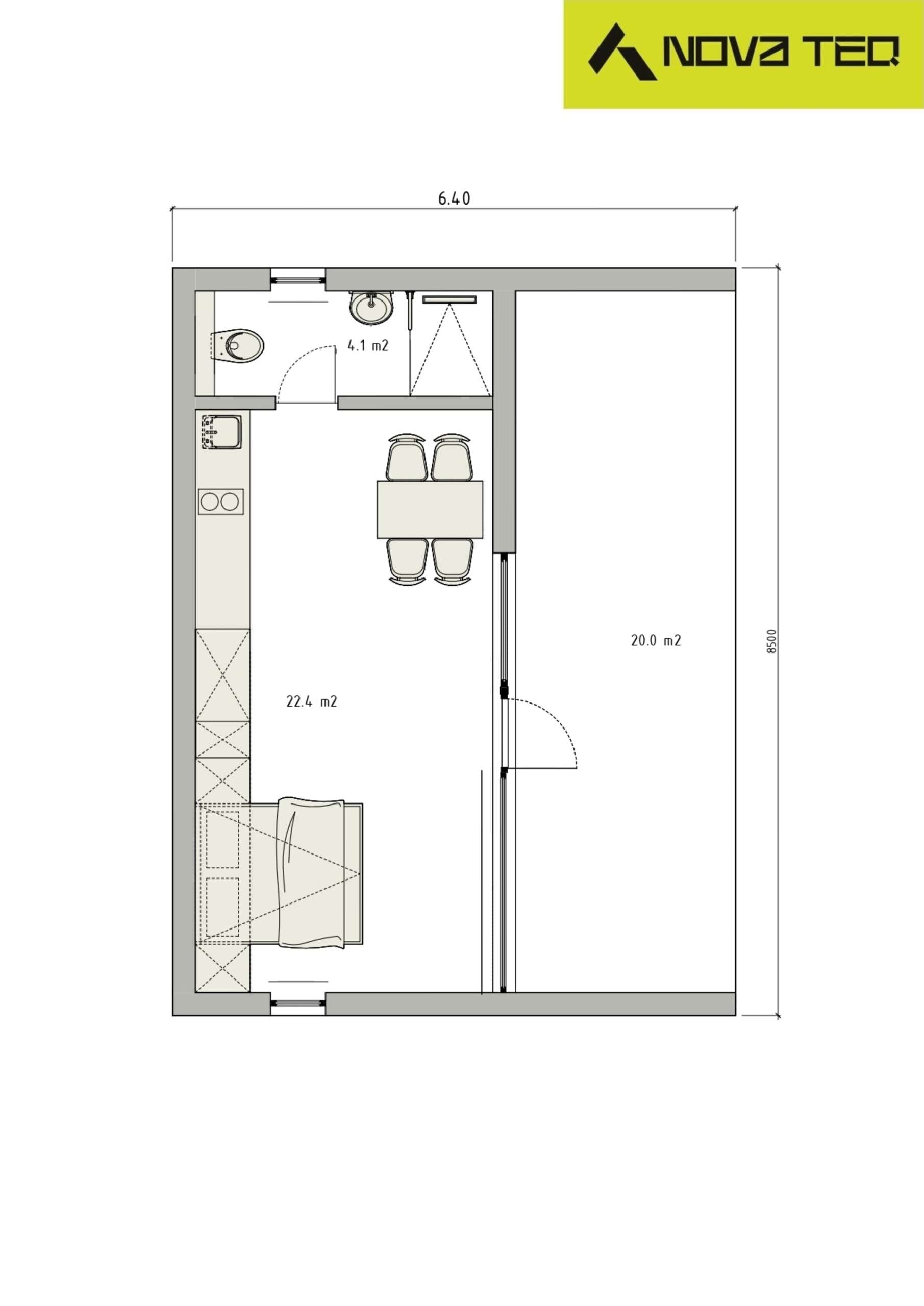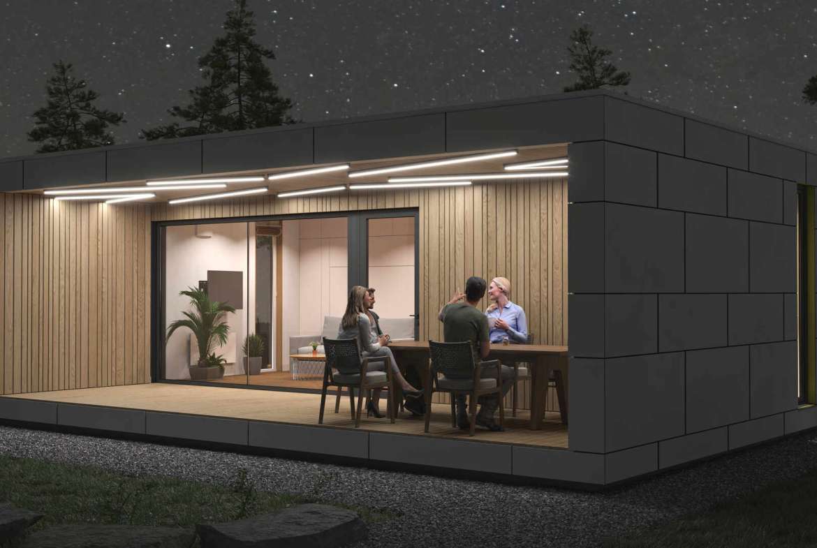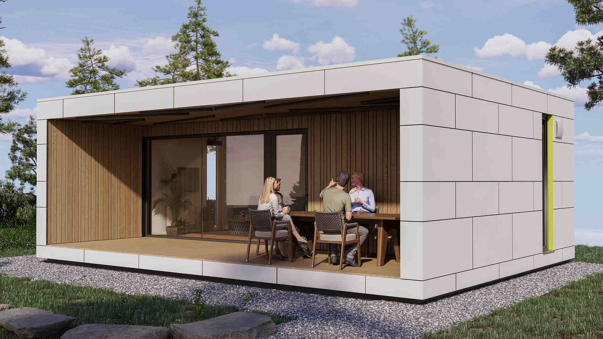 UNOMOD 55 ist ein modulares Haus von NOVA TEQ, einem Hersteller von Fertighäusern mit Sitz in der Ukraine. Dieses Modulhaus bietet 46 m² Wohnfläche, die Platz für 2 Personen bietet.