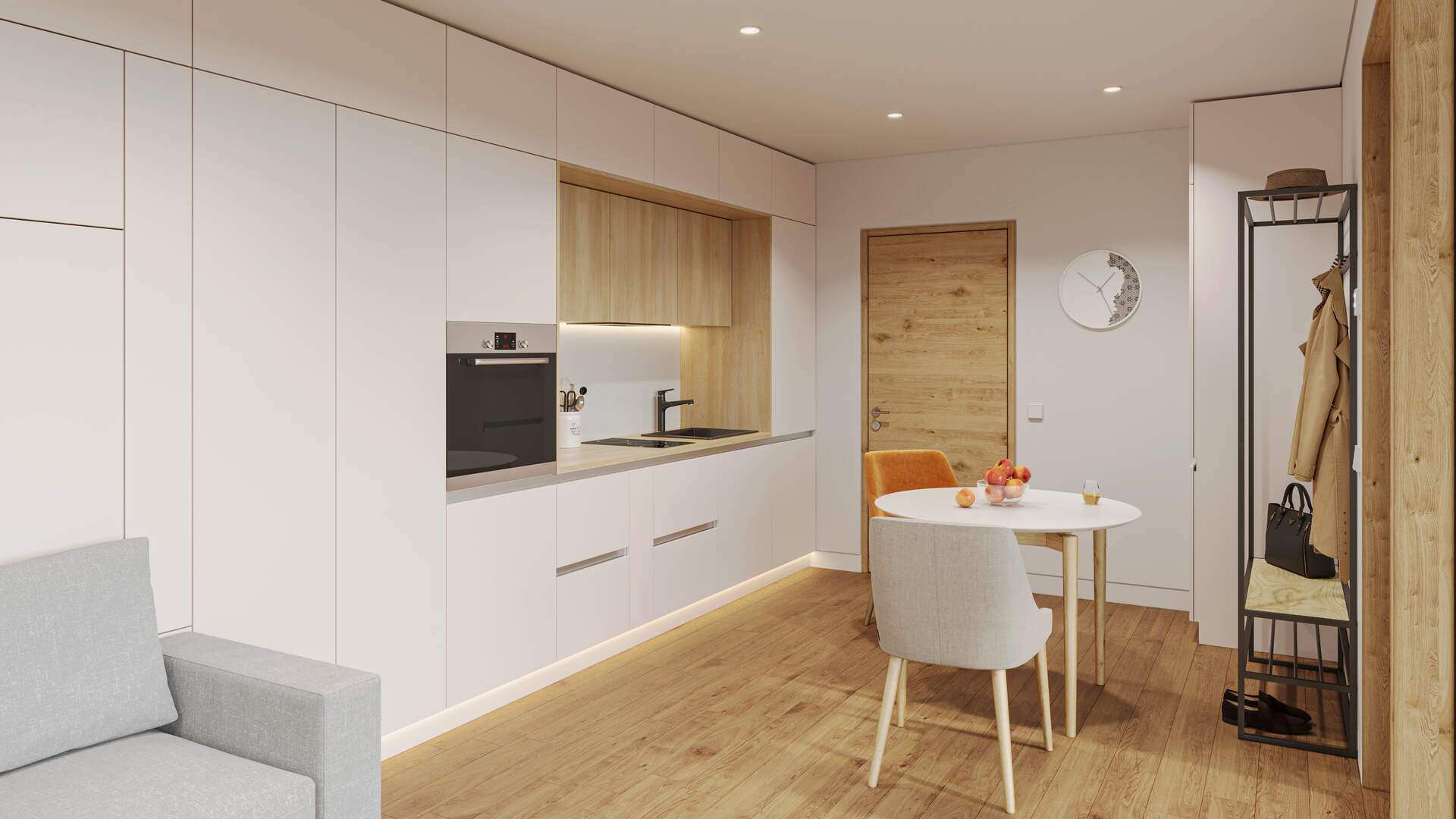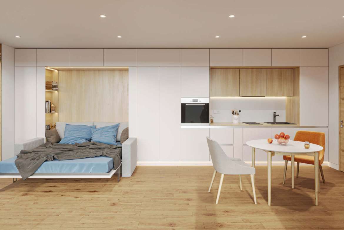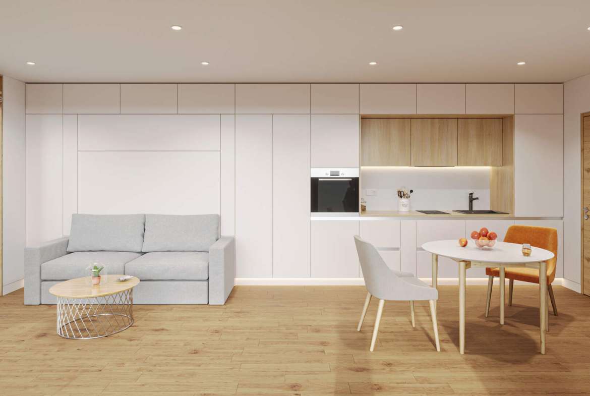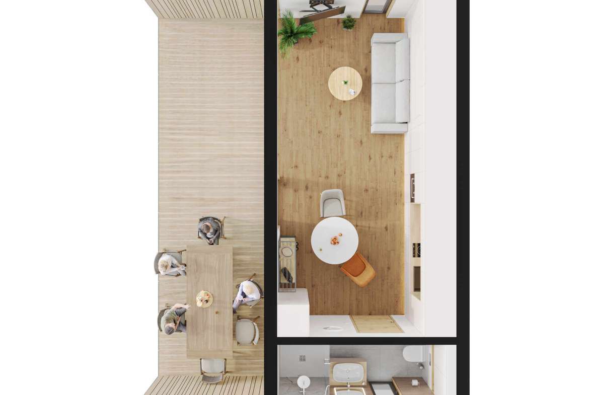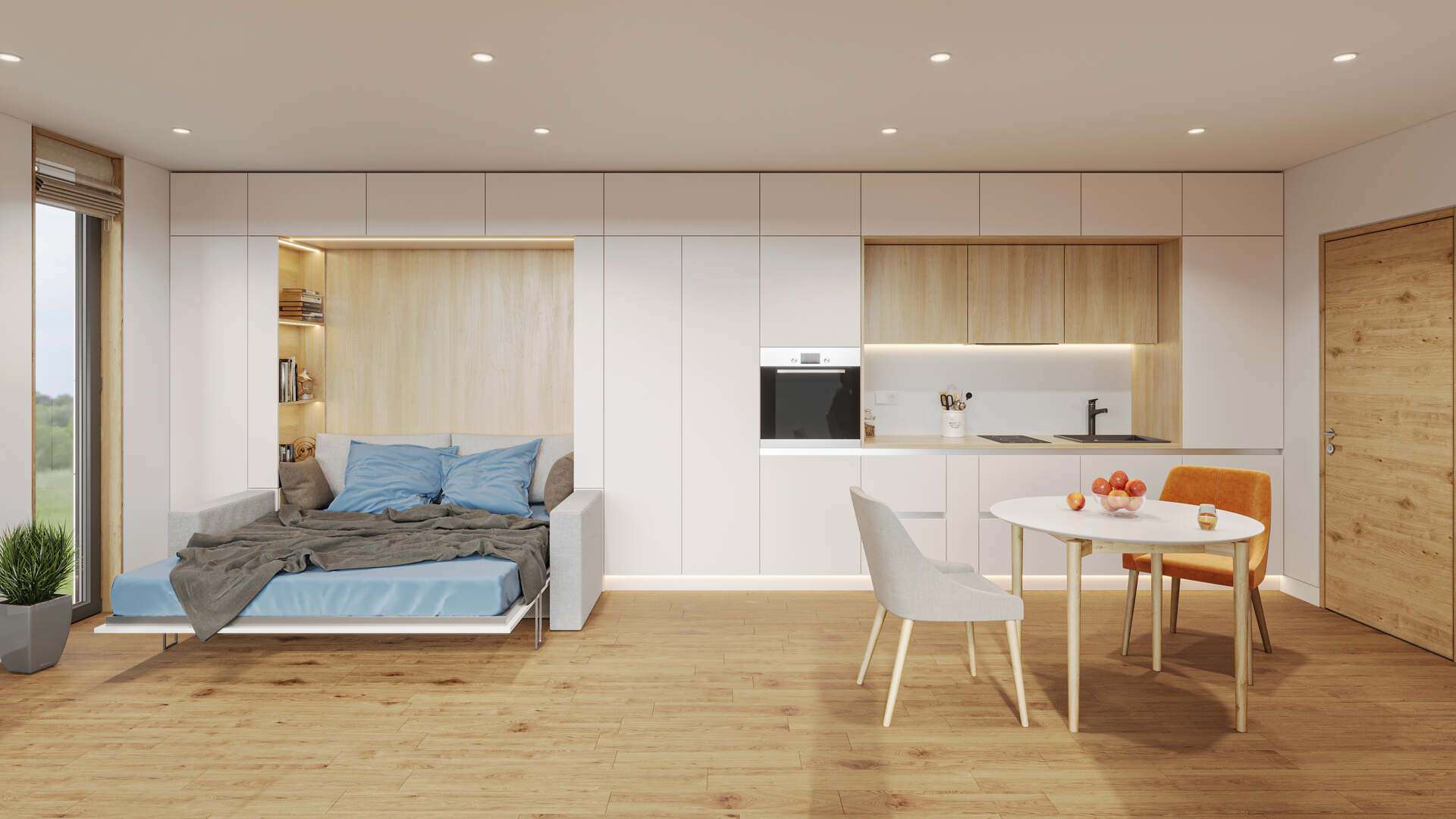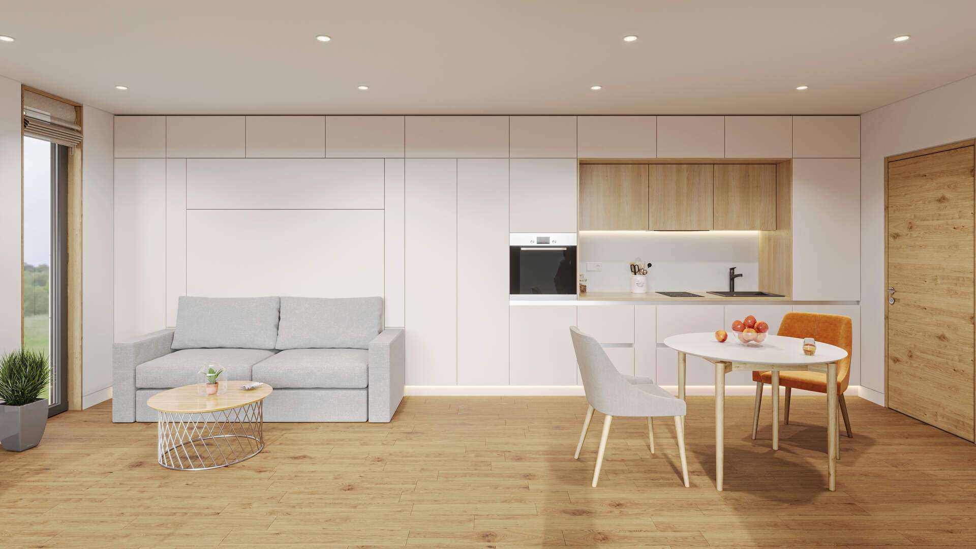 UNOMOD 55 ist ein modulares Haus von NOVA TEQ, einem Hersteller von Fertighäusern mit Sitz in der Ukraine. Dieses Modulhaus bietet 46 m² Wohnfläche, die Platz für 2 Personen bietet.