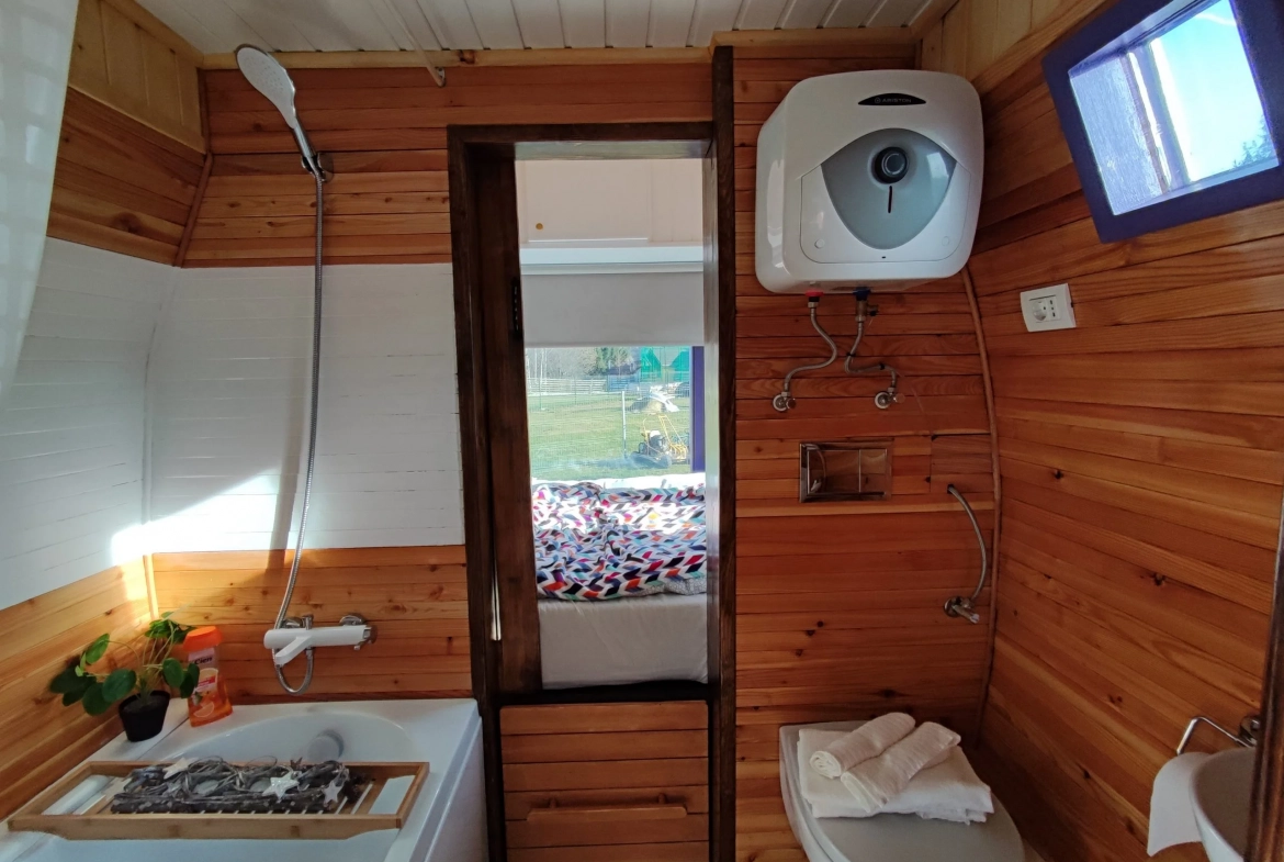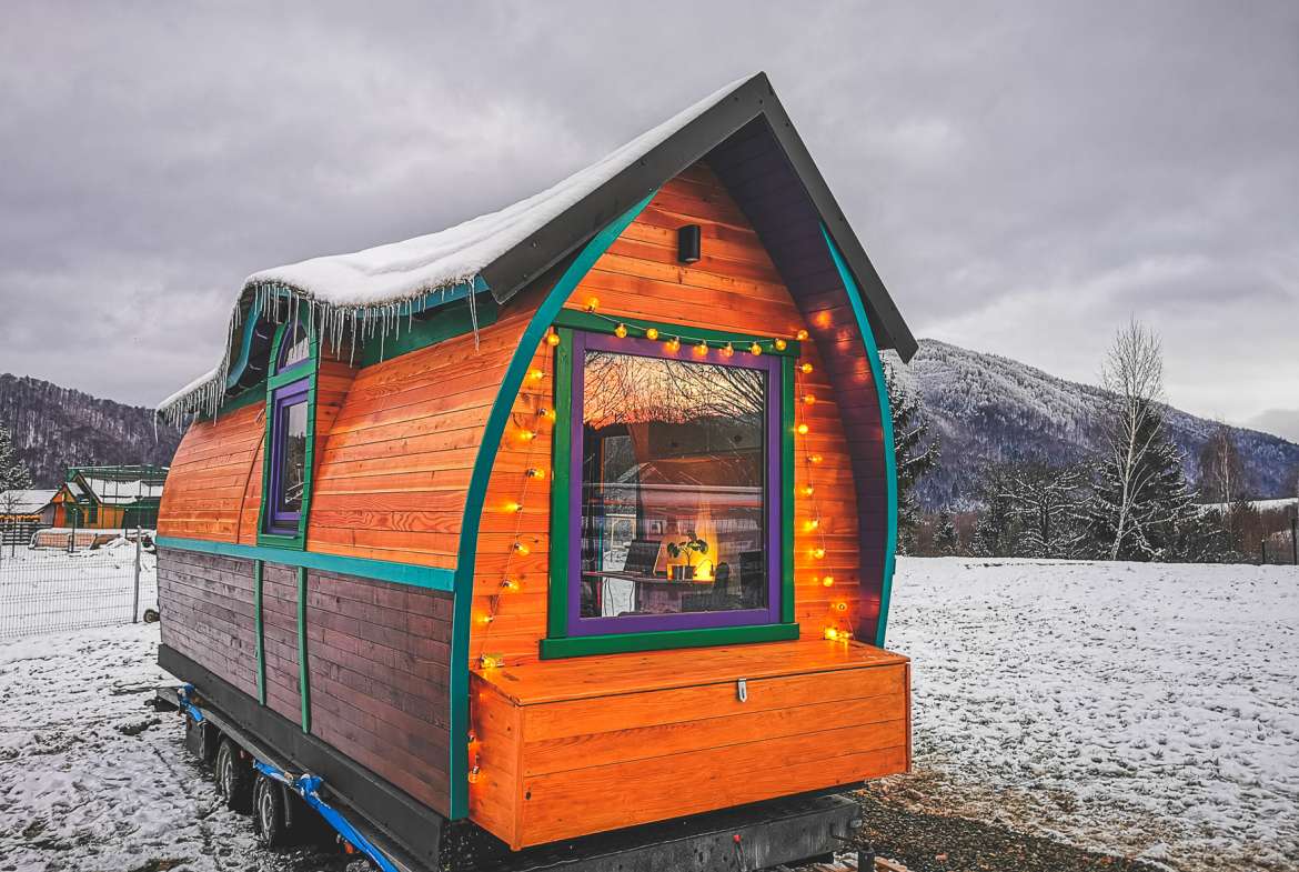 Joy ist ein Tiny House von Pura Vida Huts, einem Hersteller mit Sitz in Rumänien. Dieses winzige Haus bietet 13,8 m² Wohnfläche mit einem Schlafzimmer und einem Badezimmer.