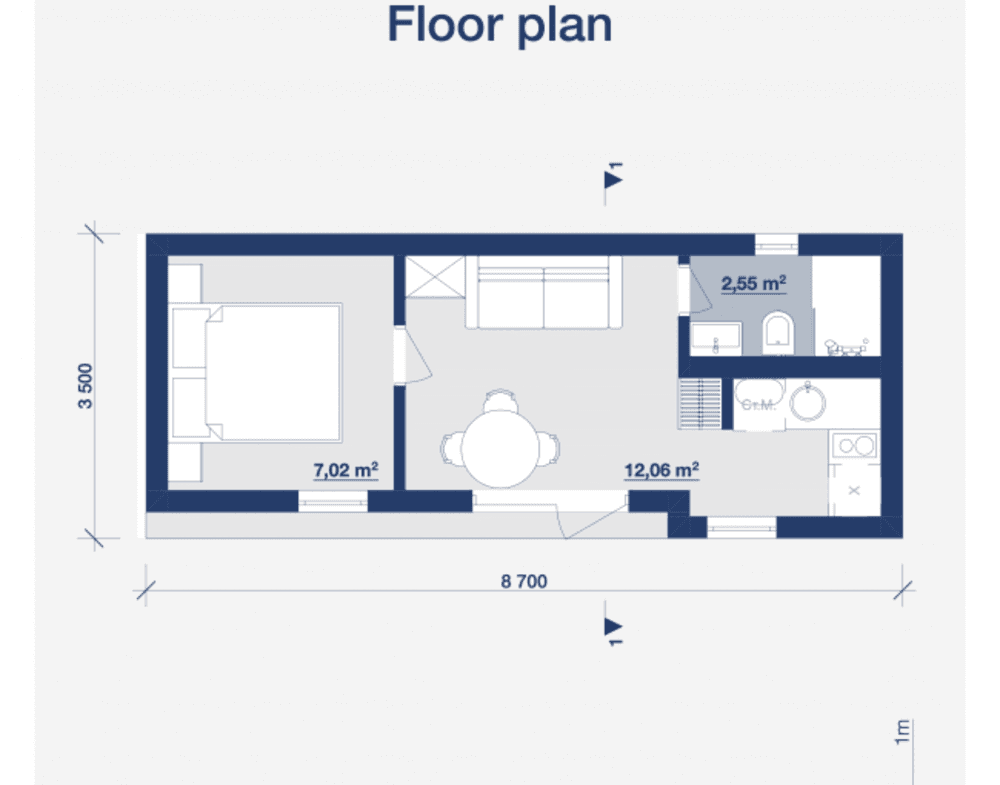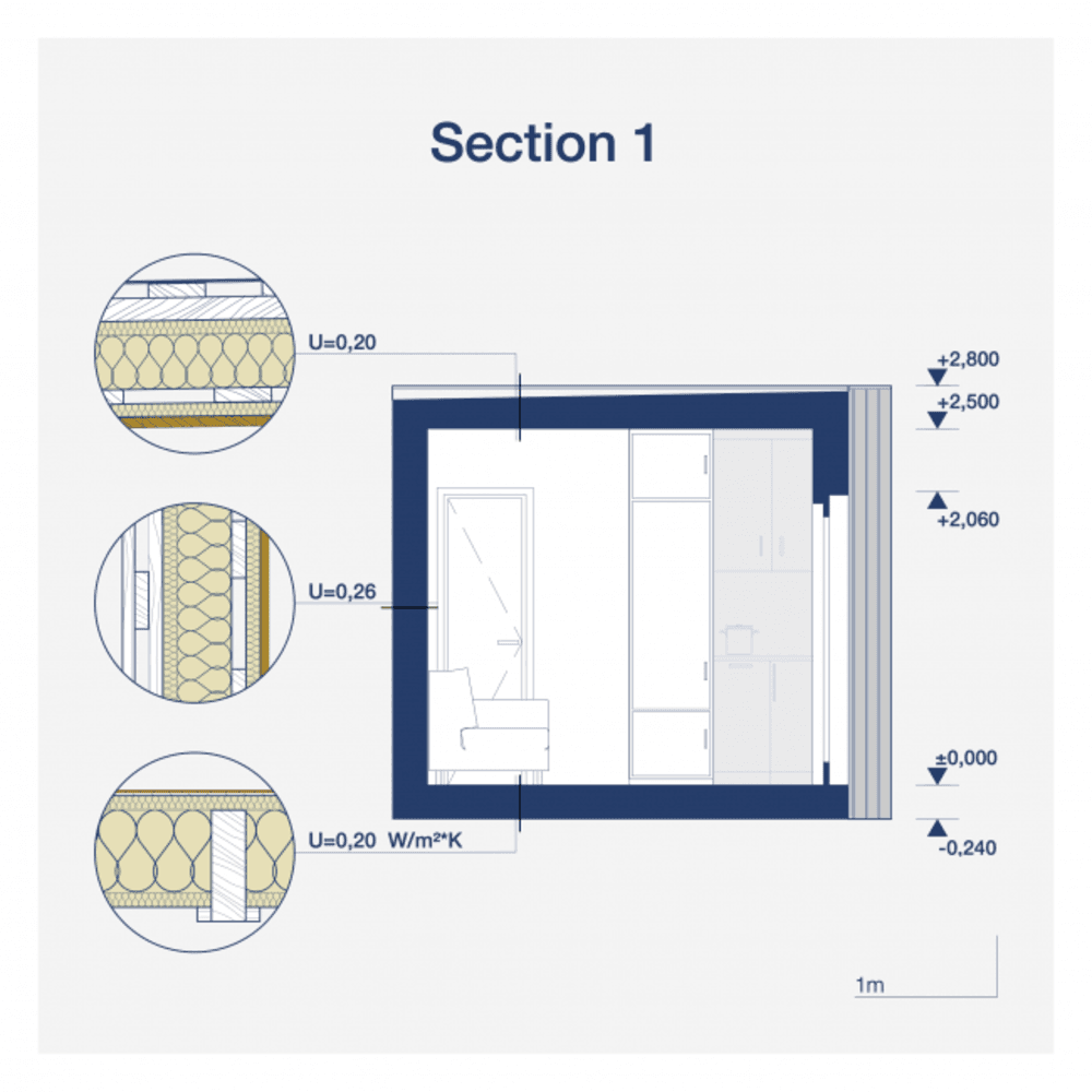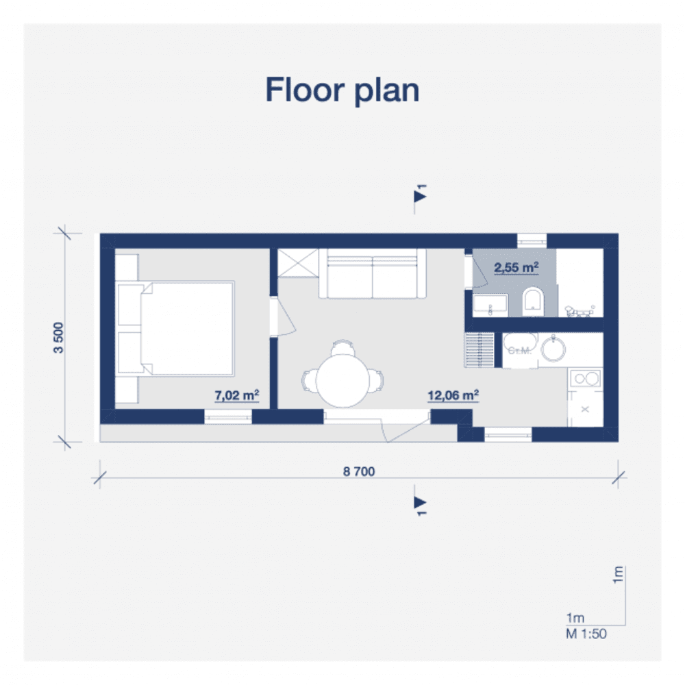 Visby ist eine modulare Cabin von Tiny House Factory, einem Hersteller von Fertighäusern mit Sitz in Lettland. Dieses Modulhaus bietet auf 21,6 m² Wohnfläche Platz für zwei Personen.
