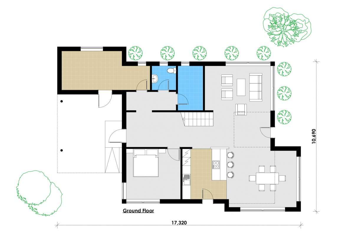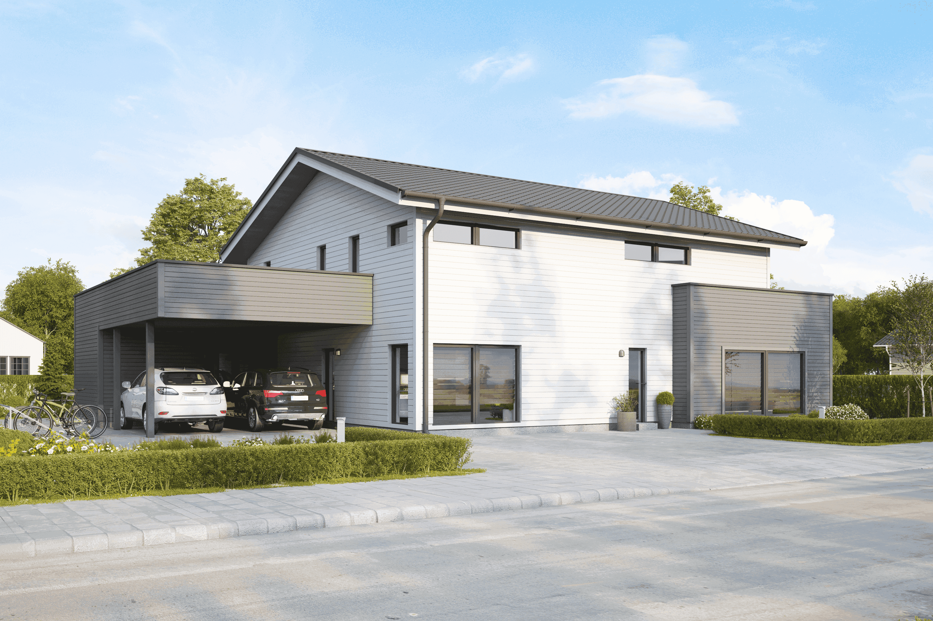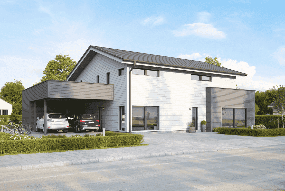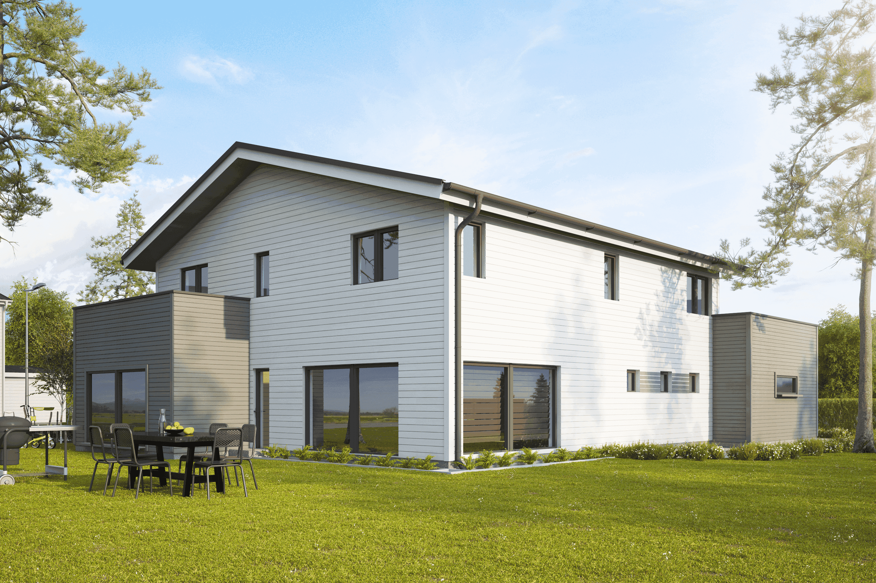 Prefabricated House 199 ist ein Fertighaus von Woodec, einem Hersteller von Fertighäusern mit Sitz in Estland. Dieses Fertighaus bietet 199 m² Wohnfläche auf zwei Etagen, mit vier Schlafzimmern und zwei Badezimmern.