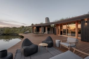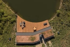 La casa se extiende hacia el exterior a través de una espaciosa terraza de madera, abrazando los contornos naturales del paisaje. Cuidadosamente diseñada con: