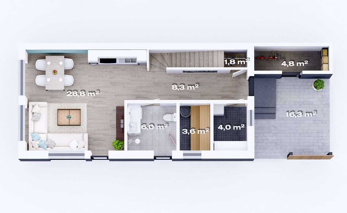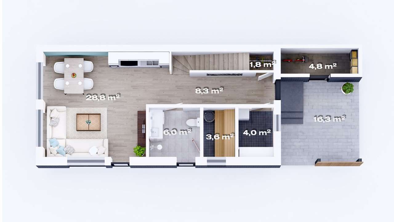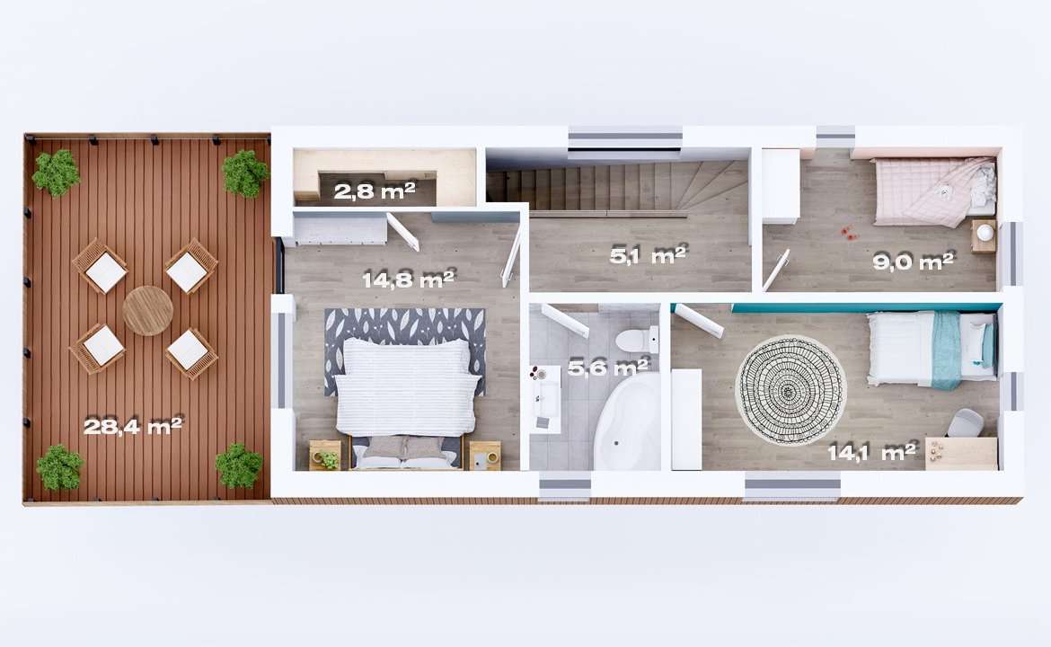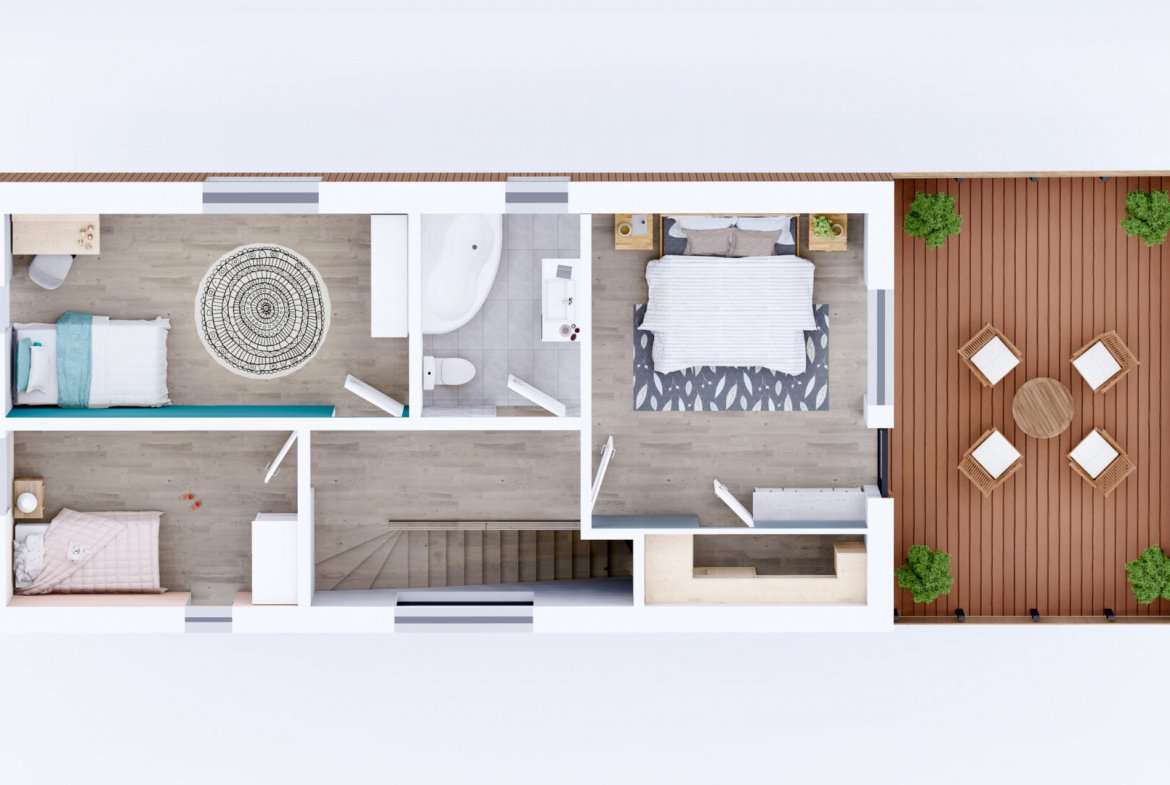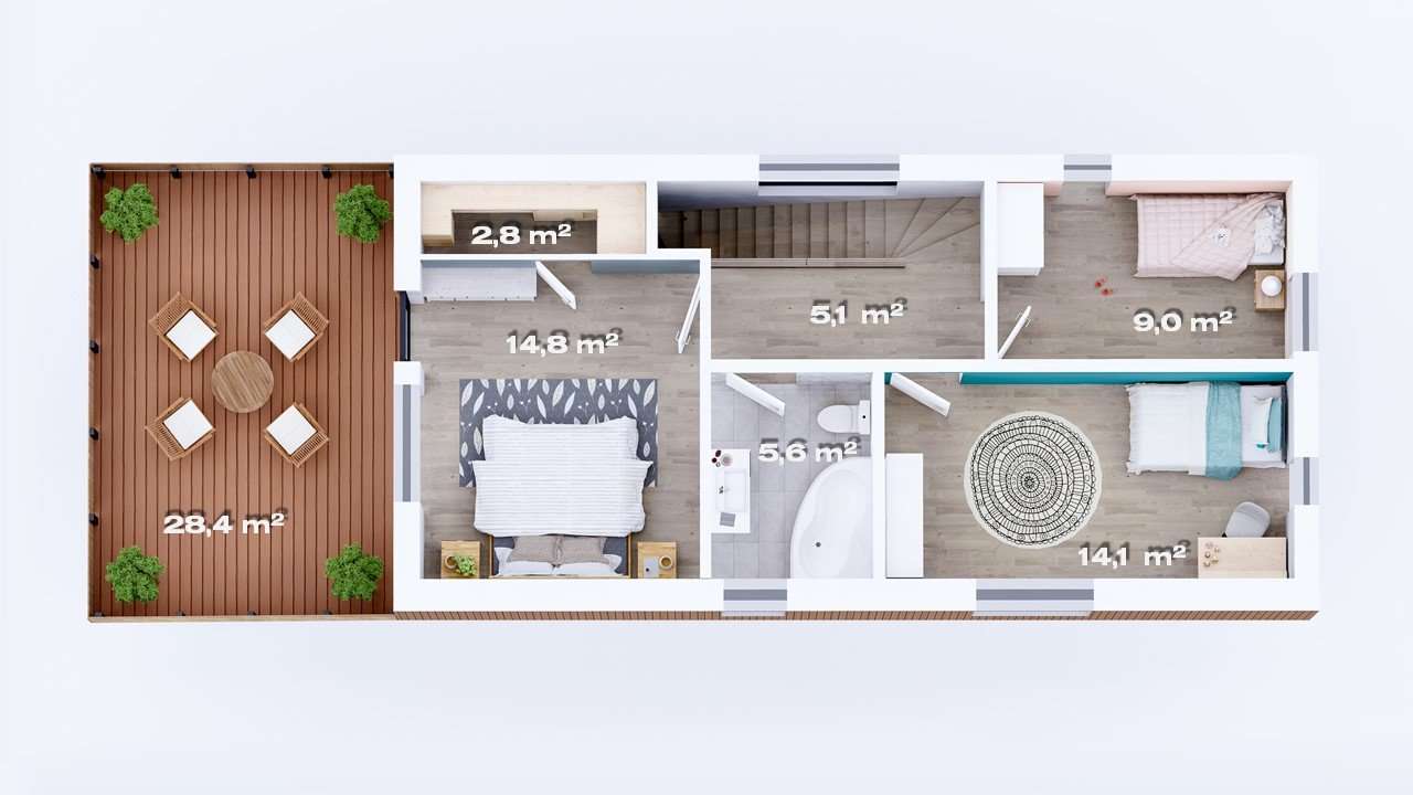 Aurora 2-140 es una casa modular construida por Akso-Haus, un fabricante de prefabricados con sede en Estonia. Esta casa modular ofrece 103,9 m² de espacio habitable en dos plantas, con tres dormitorios y un baño.