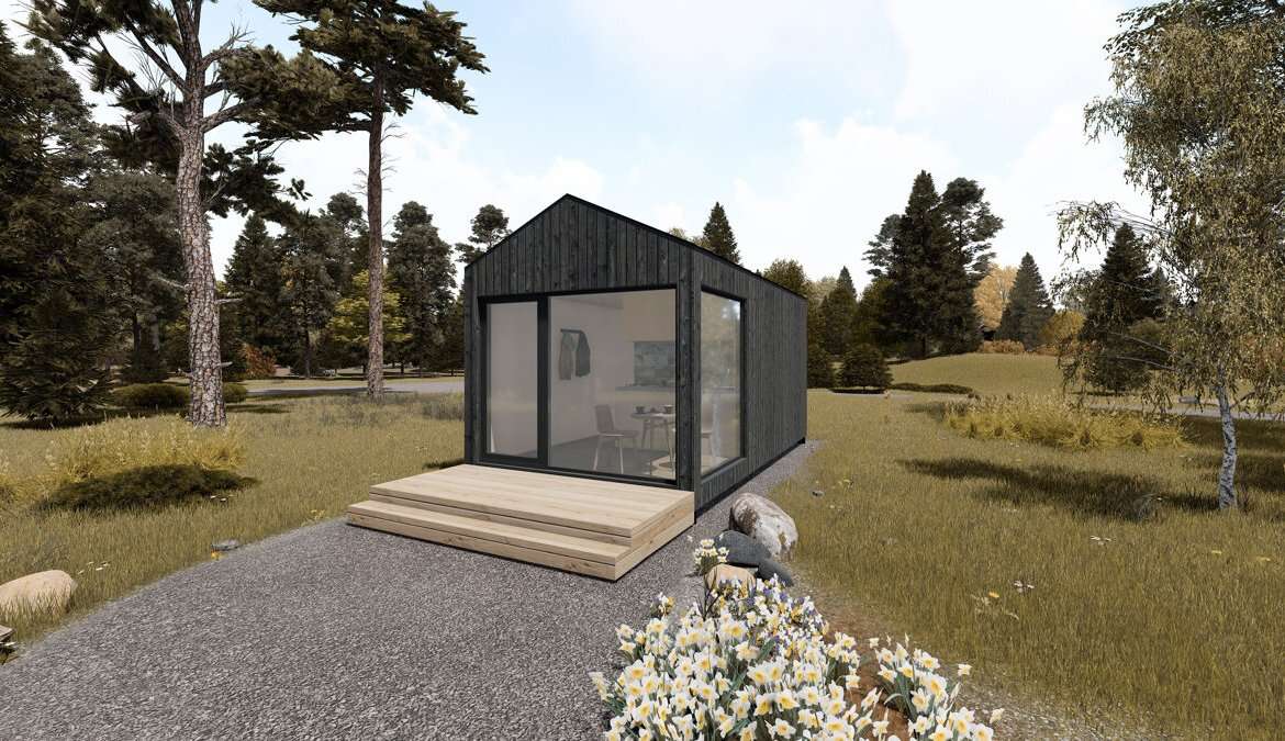 Svīre es una cabaña construida por CMB Housing Solutions, Fabricante de prefabricados con sede en Letonia. Esta Cabina tiene 15 m² de espacio habitable para dos personas.
