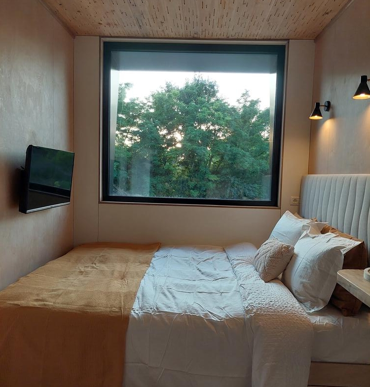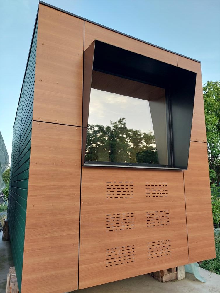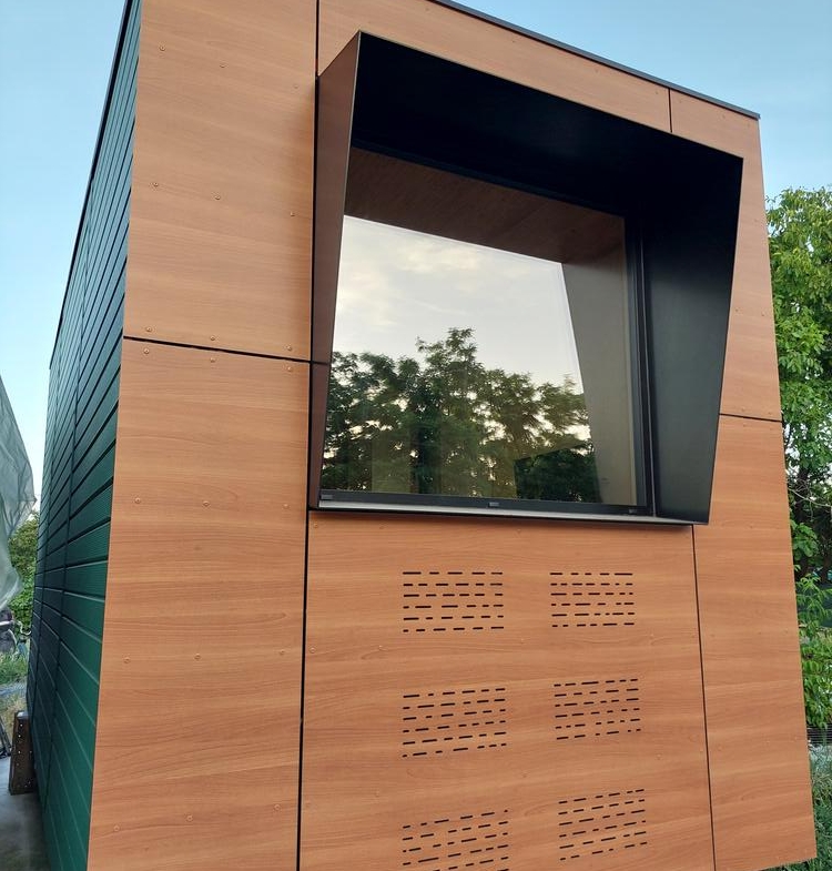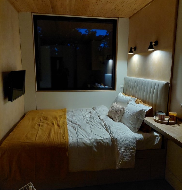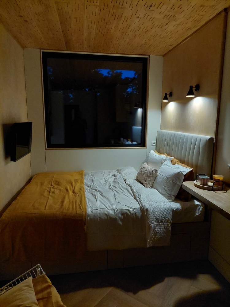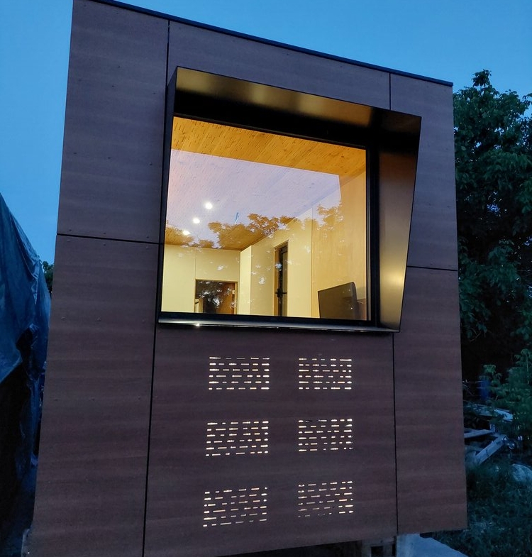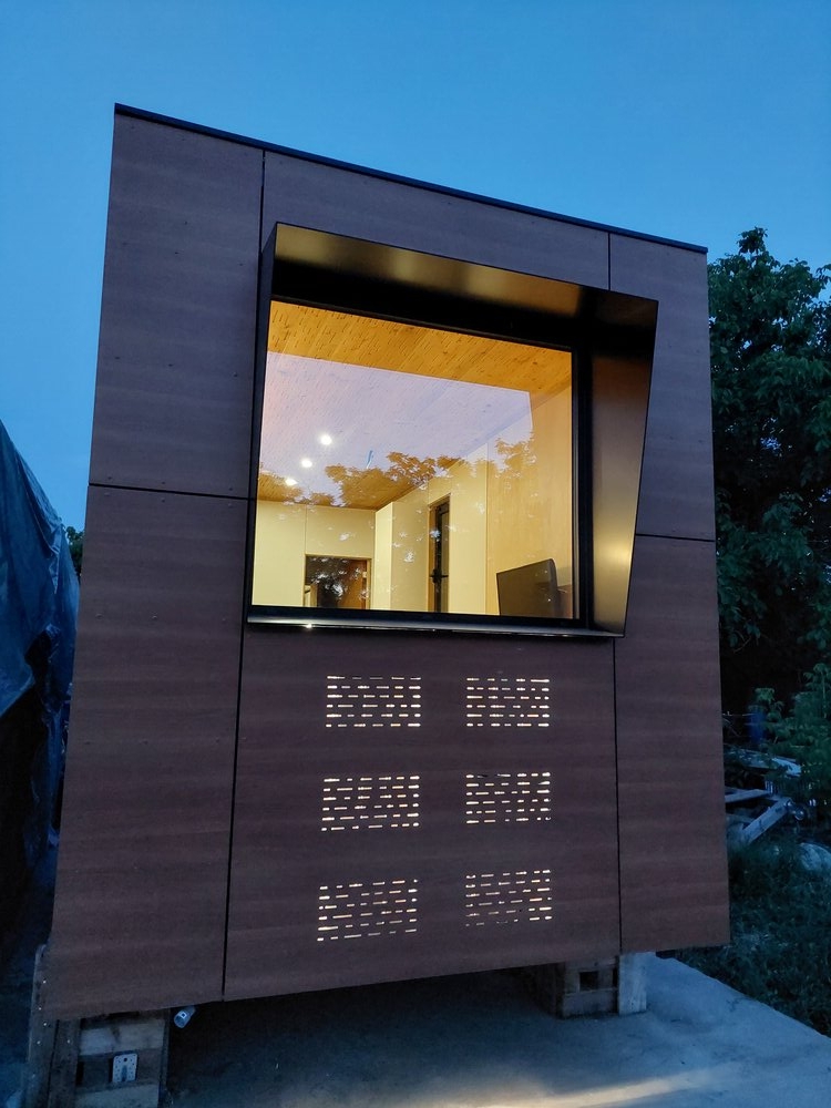 Radio es una cabaña modular construida por Domu, un fabricante de prefabricados con sede en Rumanía. Esta cabaña prefabricada tiene unos 19 m² de espacio habitable, 1 dormitorio y 1 cuarto de baño.