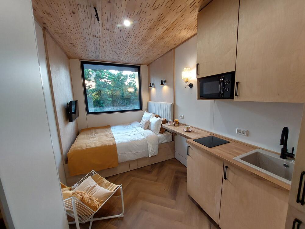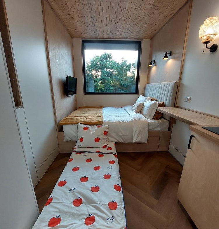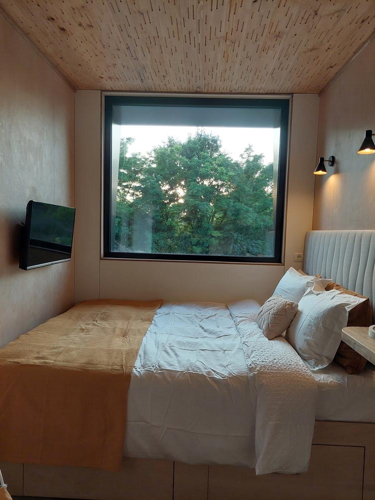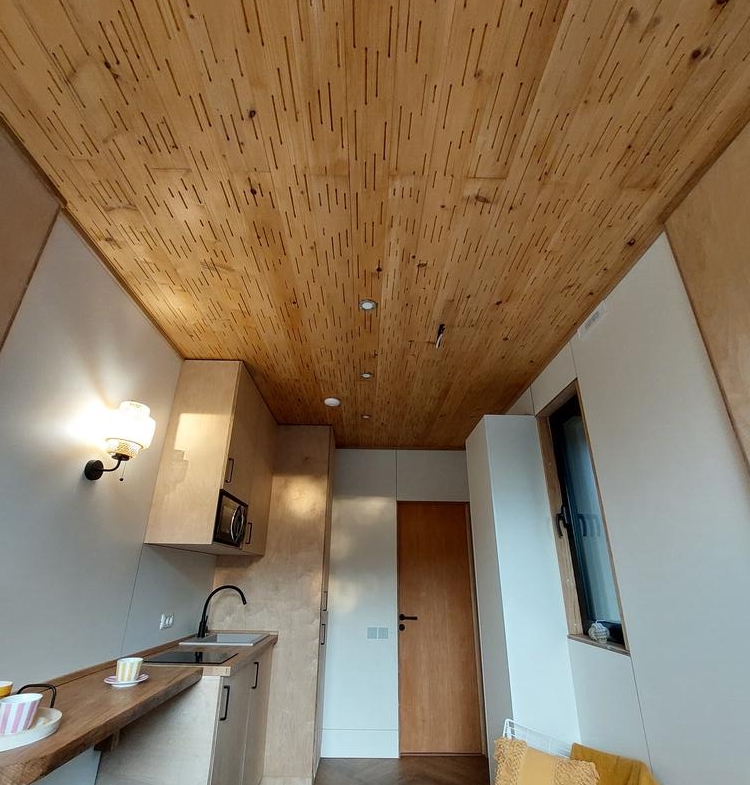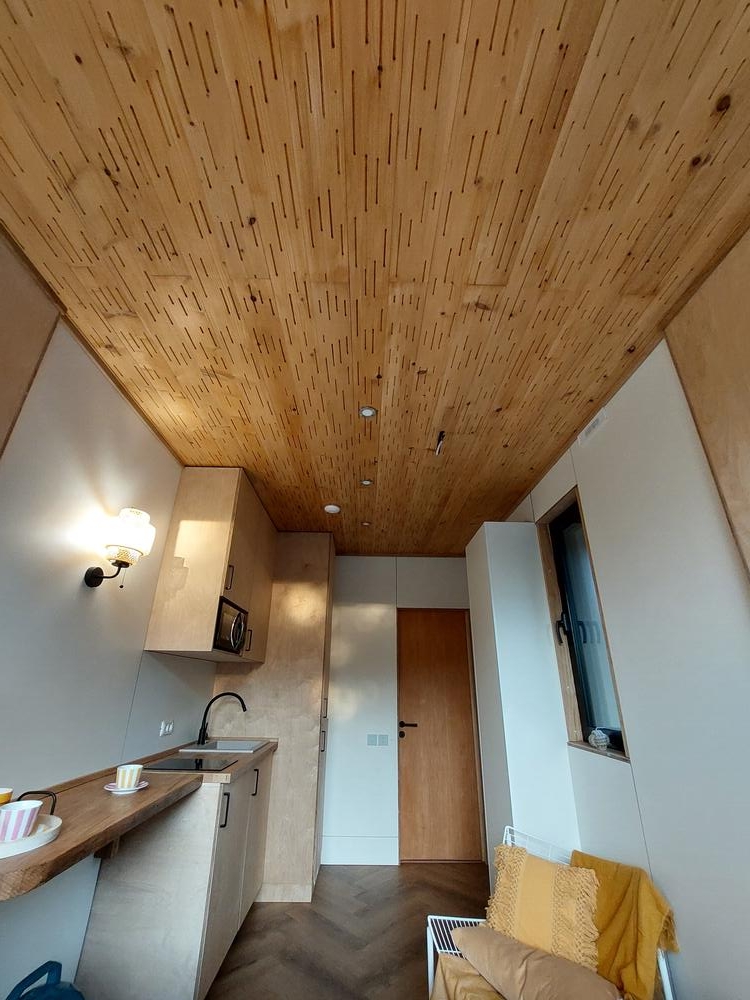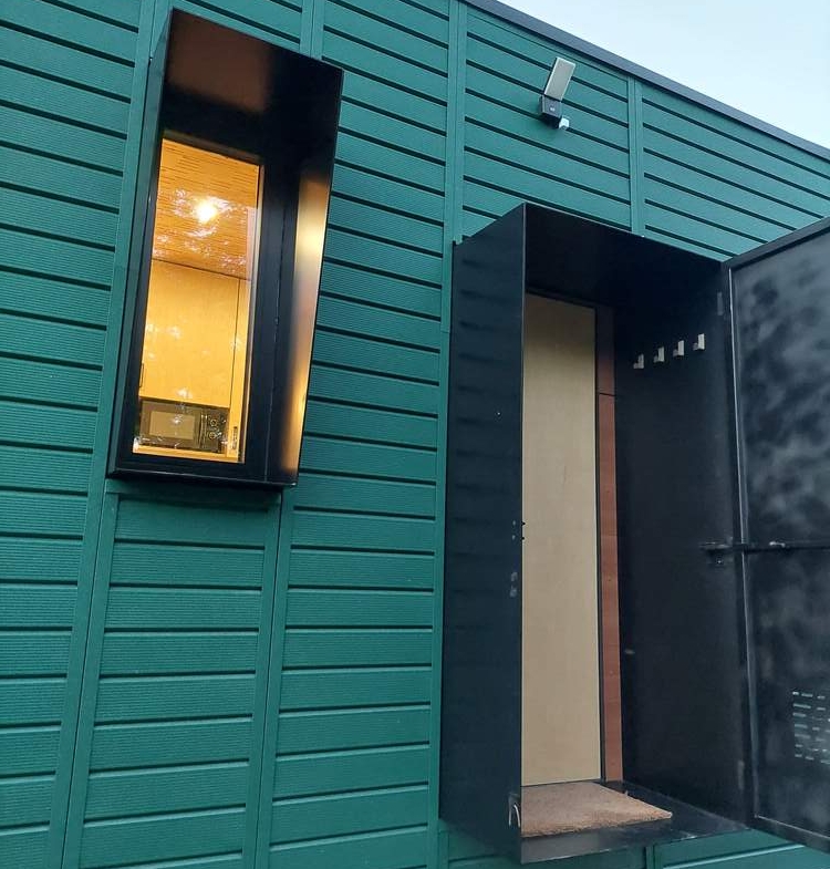 Radio es una cabaña modular construida por Domu, un fabricante de prefabricados con sede en Rumanía. Esta cabaña prefabricada tiene unos 19 m² de espacio habitable, 1 dormitorio y 1 cuarto de baño.