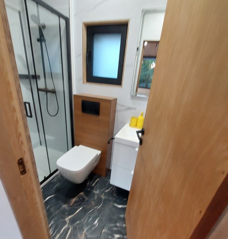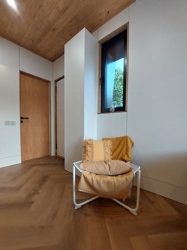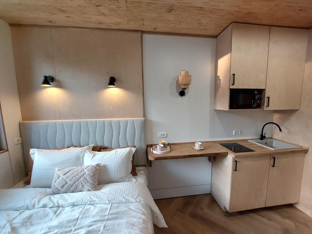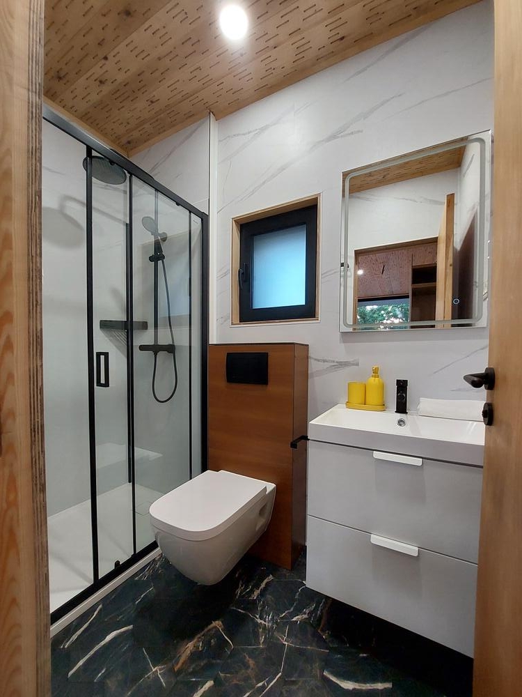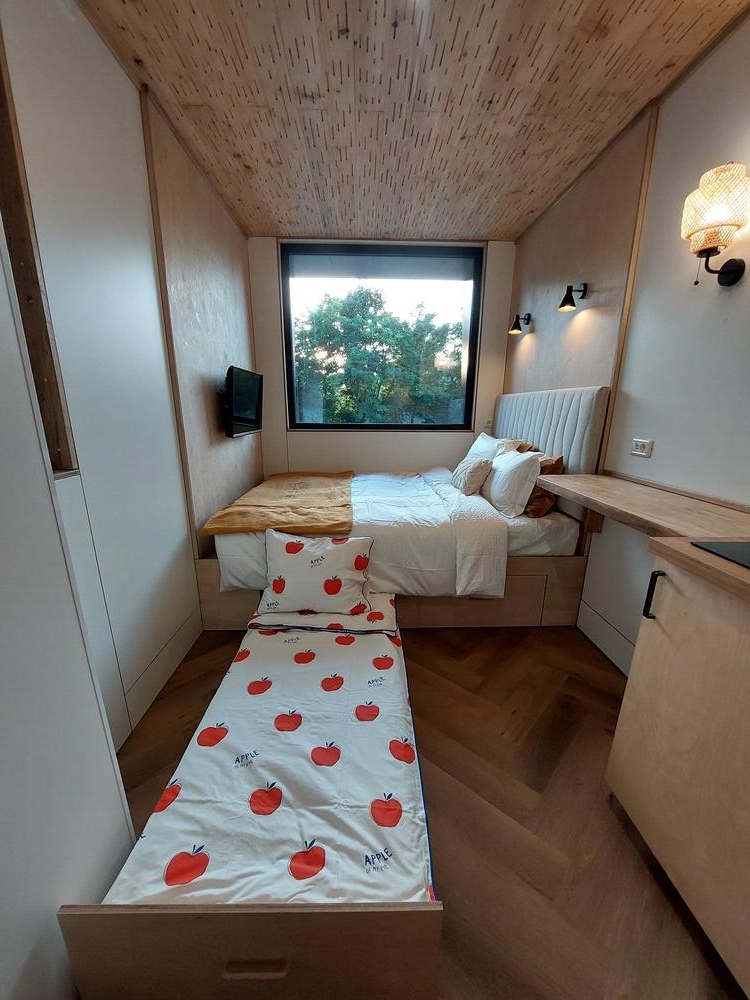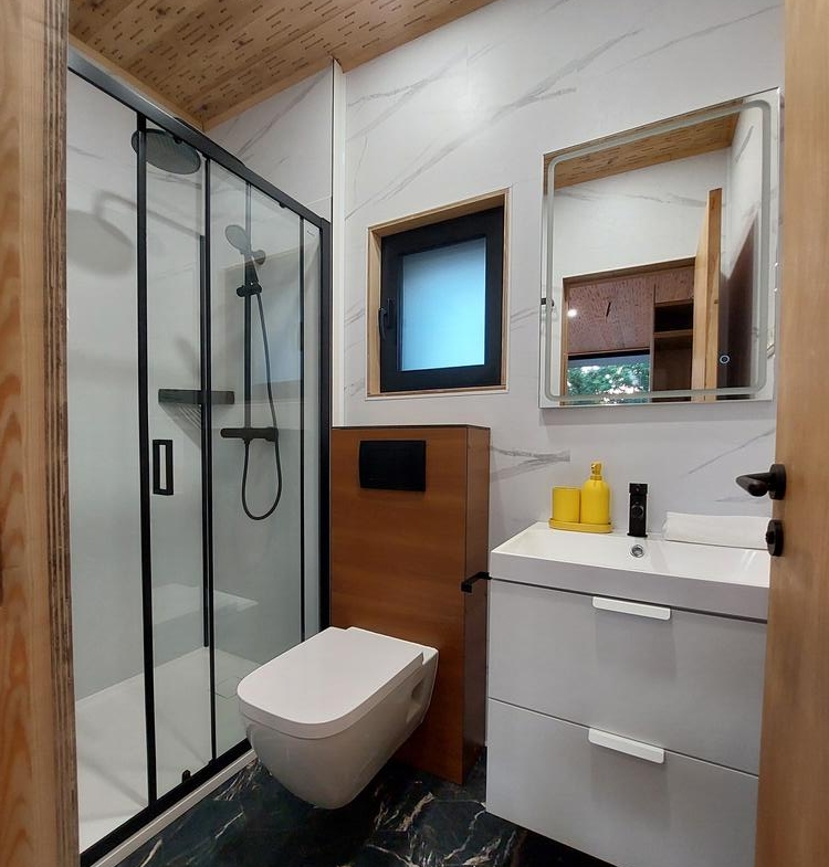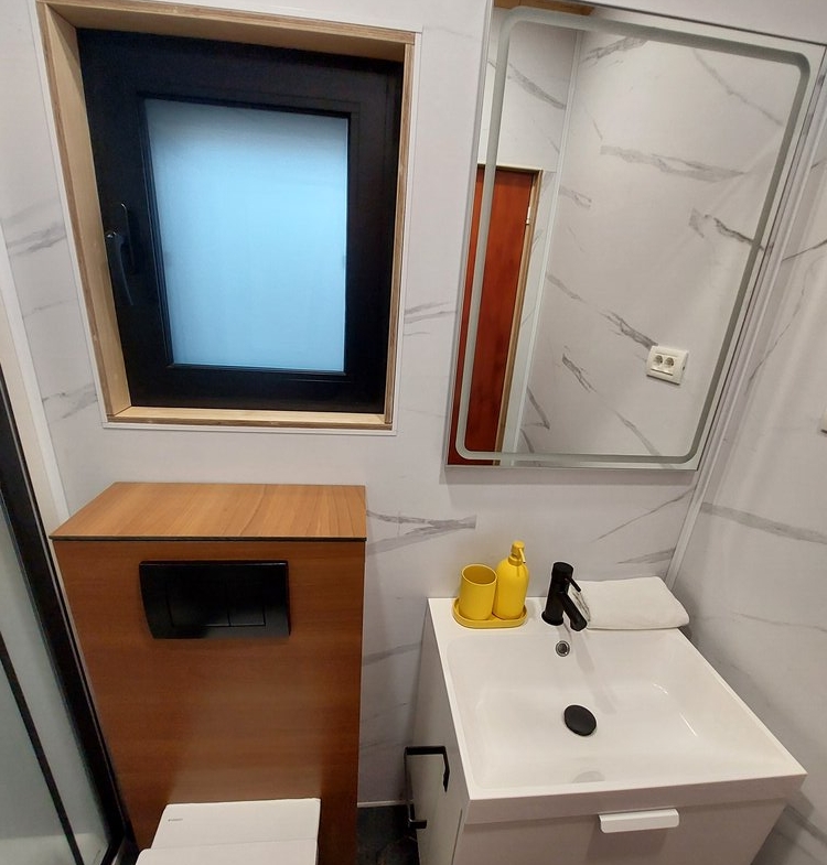 Radio es una cabaña modular construida por Domu, un fabricante de prefabricados con sede en Rumanía. Esta cabaña prefabricada tiene unos 19 m² de espacio habitable, 1 dormitorio y 1 cuarto de baño.