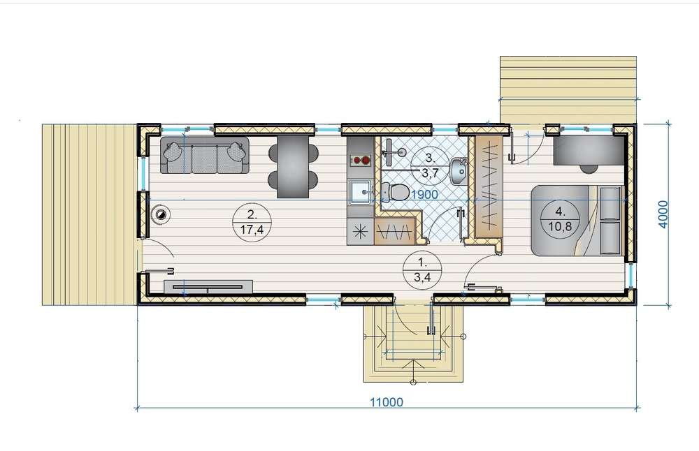 Ecospace 45 es una casa modular construida por EcoSpace, un fabricante de prefabricados con sede en Letonia. Esta casa prefabricada ofrece 44 m² de espacio habitable, con 1 dormitorio y 1 baño.