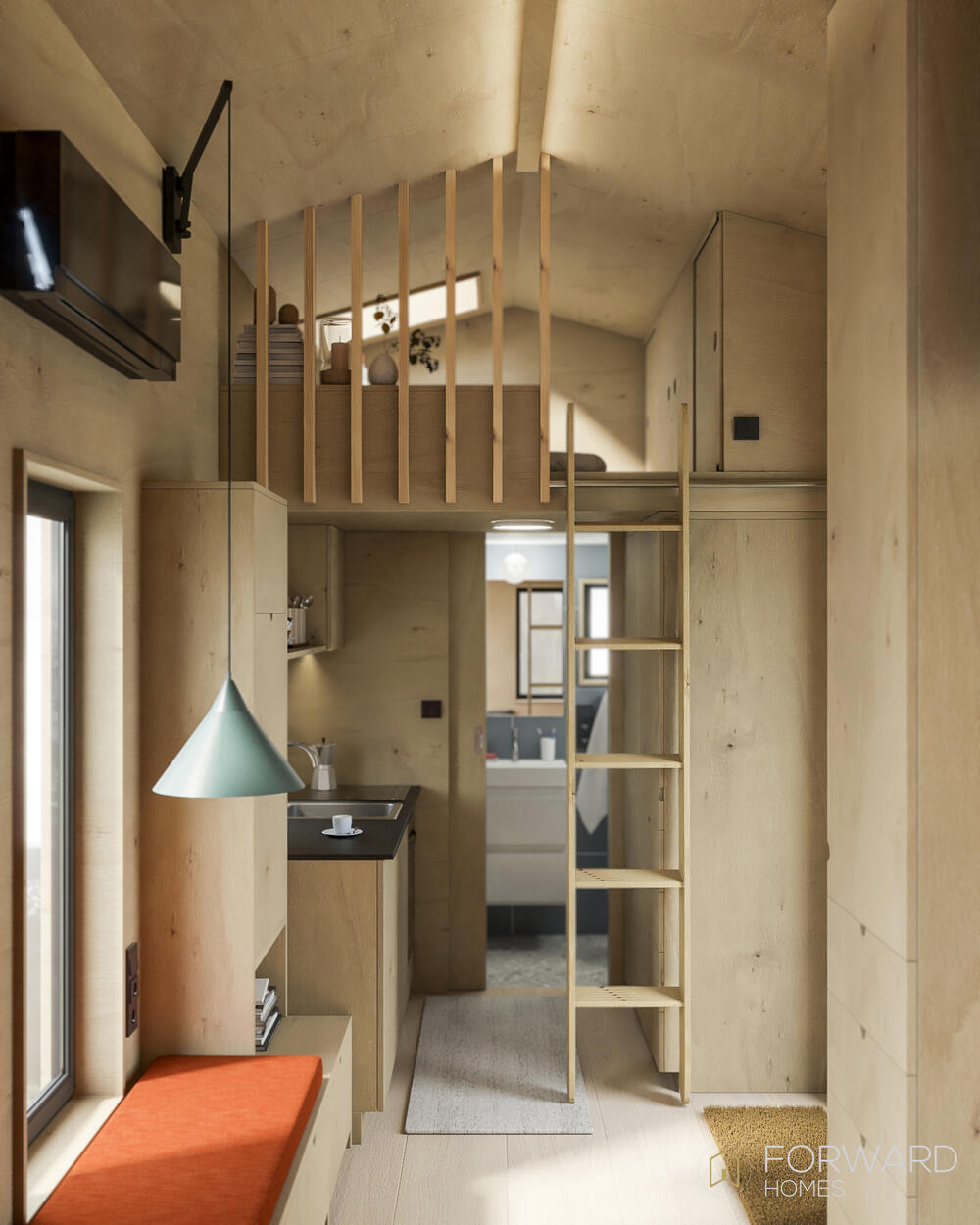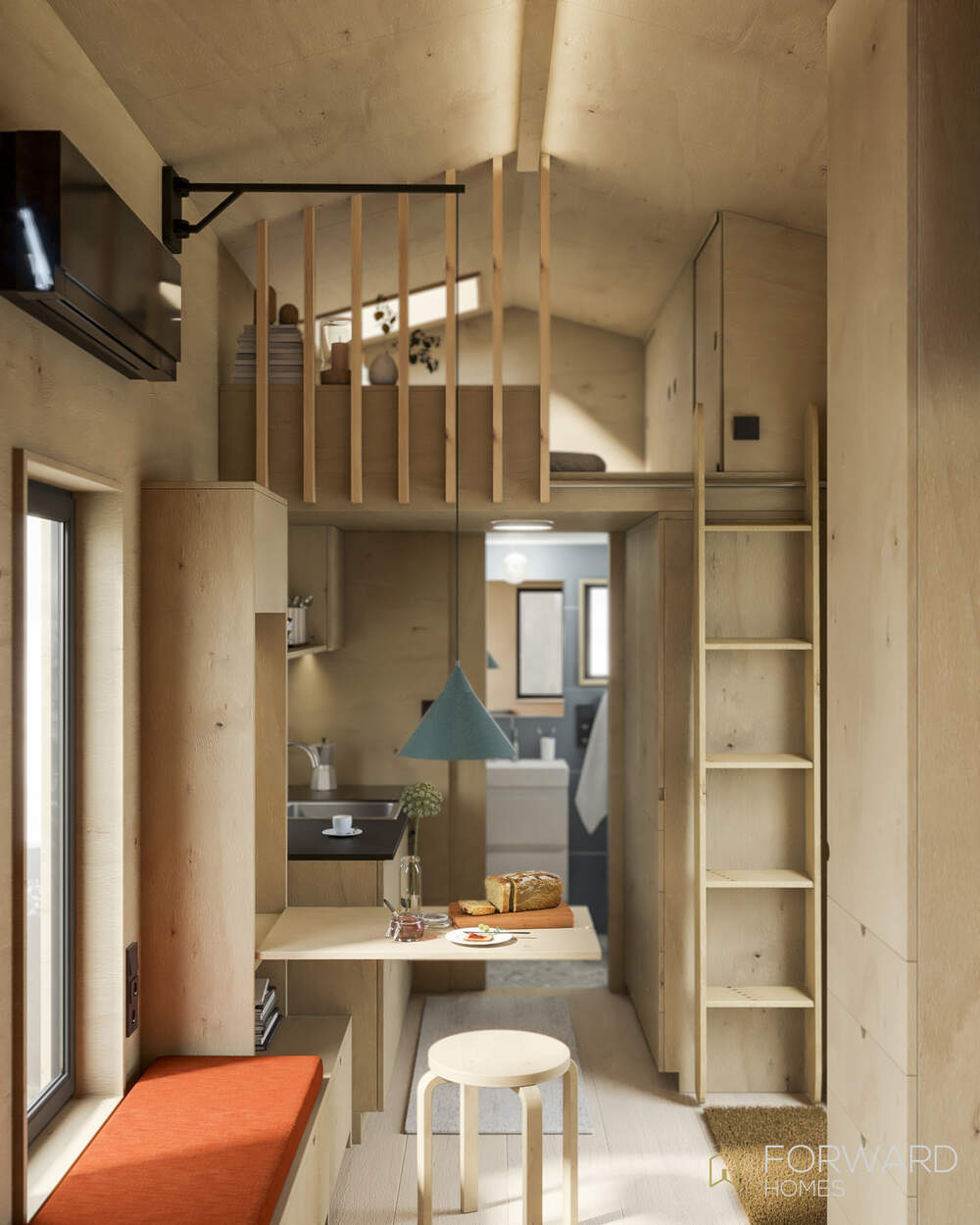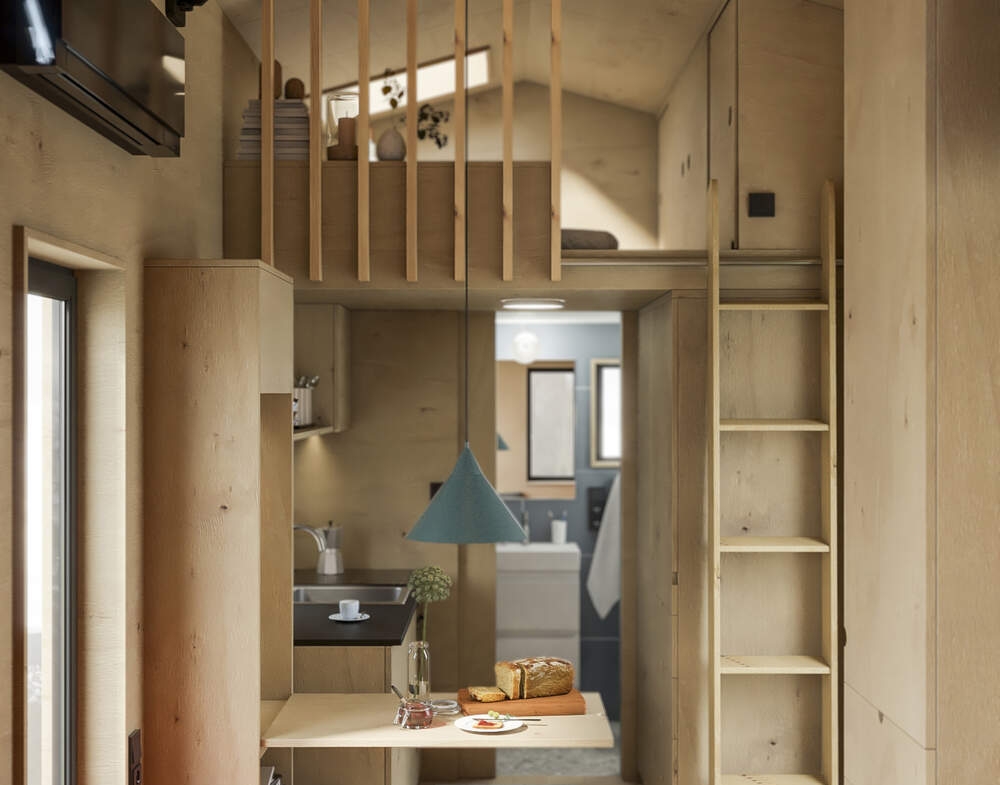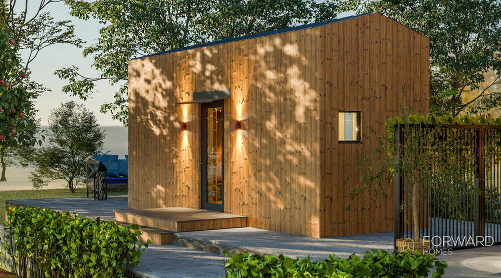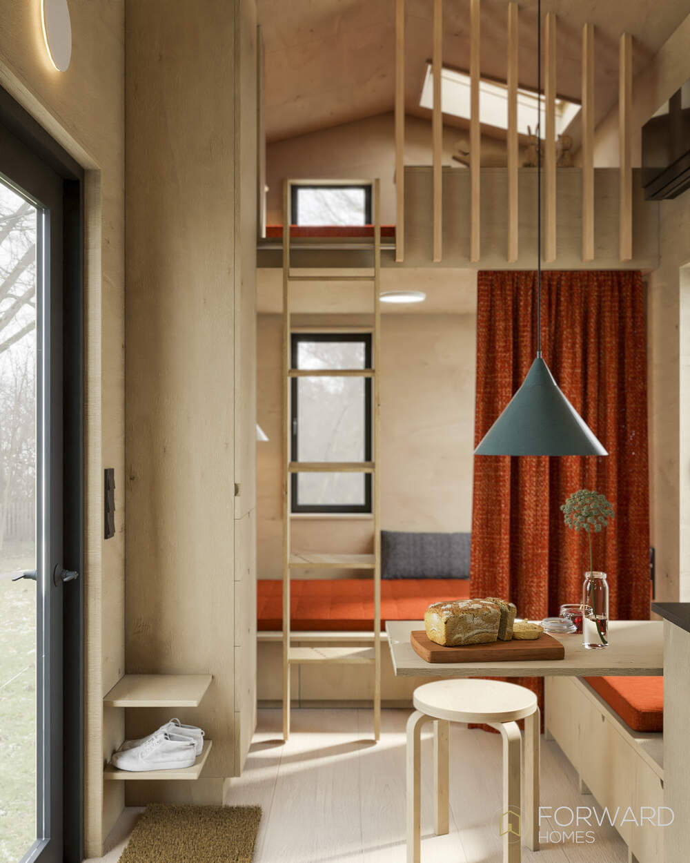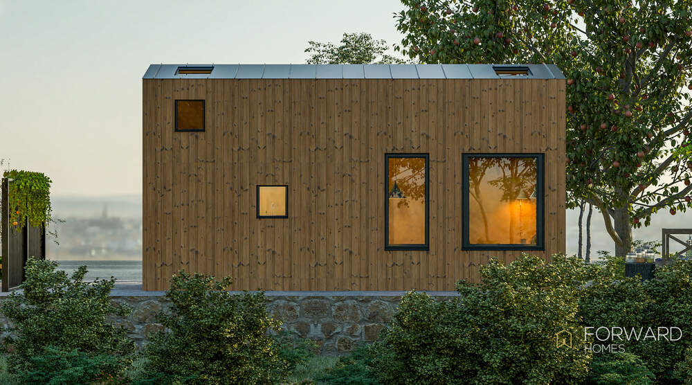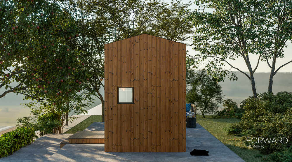 Ty es una casa diminuta construida por Forward Homes, un fabricante de casas prefabricadas con sede en Polonia. Esta casa prefabricada ofrece 17,6 m² de espacio habitable, con capacidad para 5 personas.