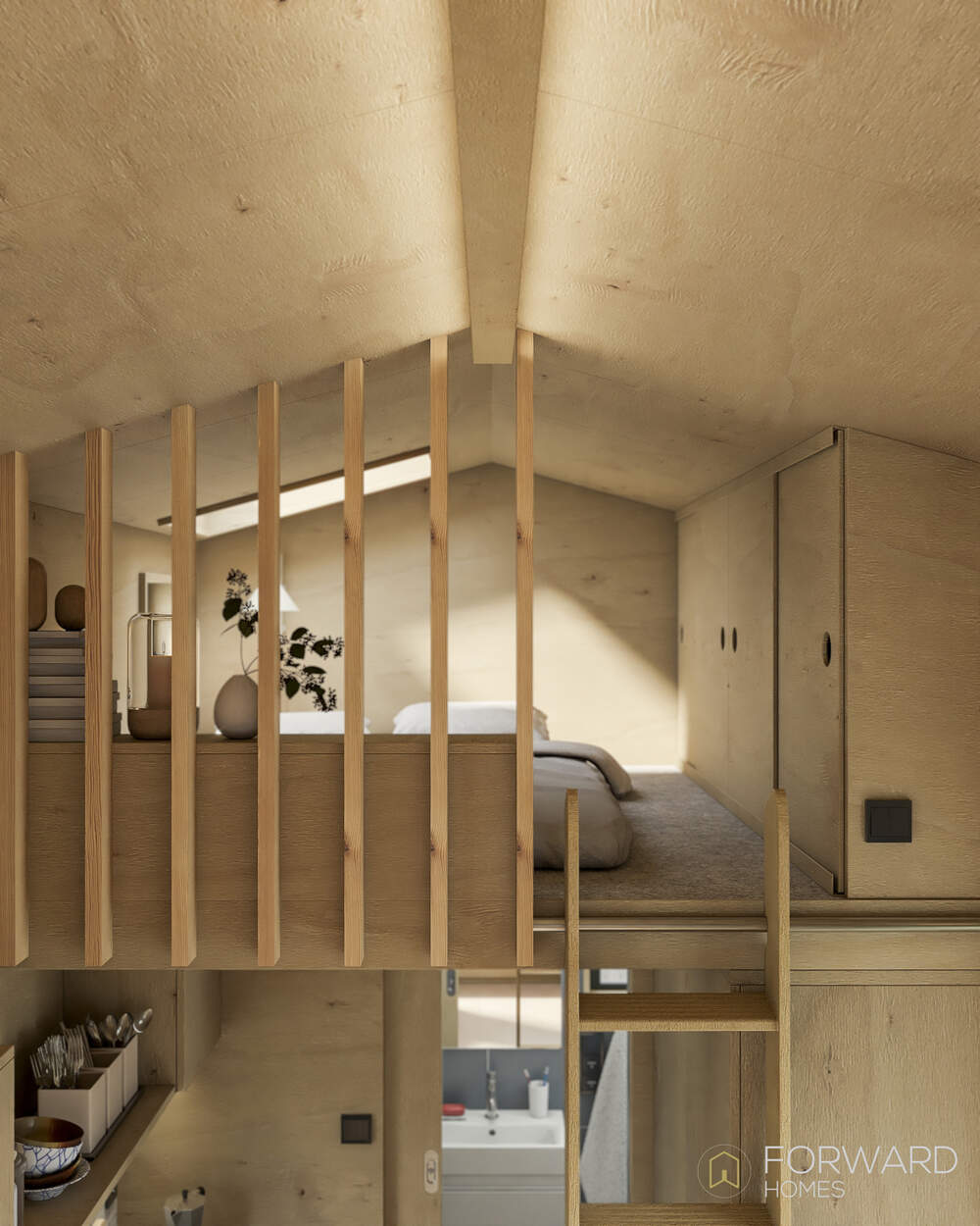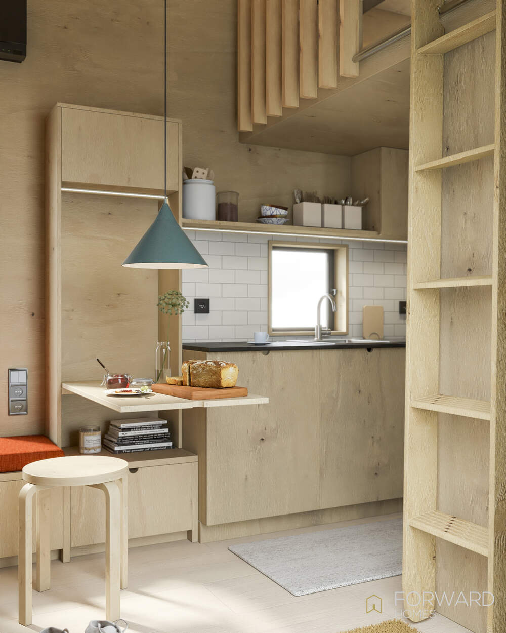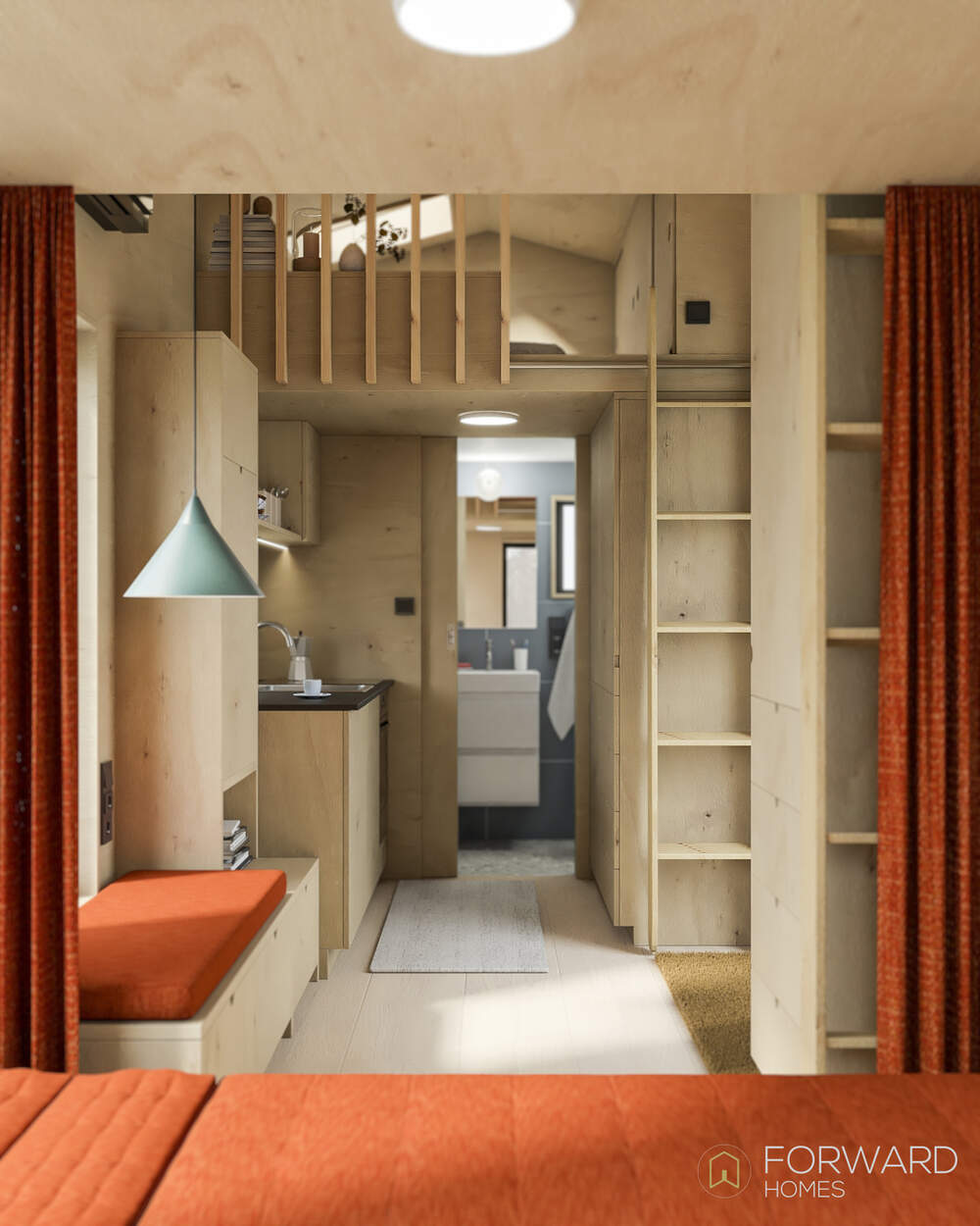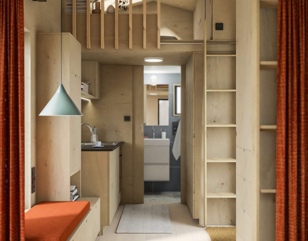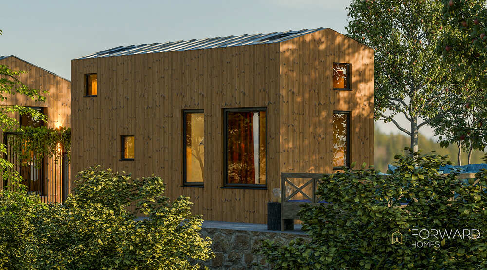 Ty es una casa diminuta construida por Forward Homes, un fabricante de casas prefabricadas con sede en Polonia. Esta casa prefabricada ofrece 17,6 m² de espacio habitable, con capacidad para 5 personas.