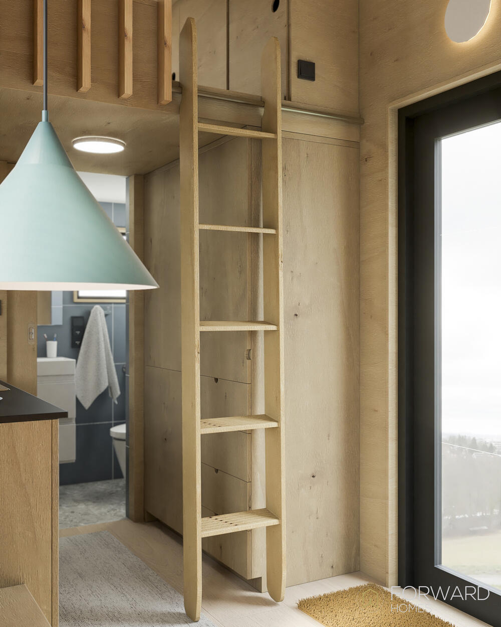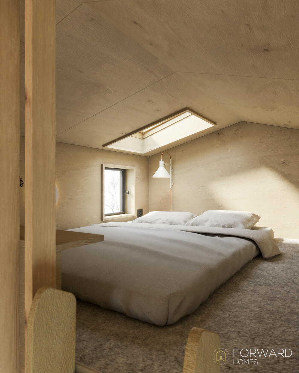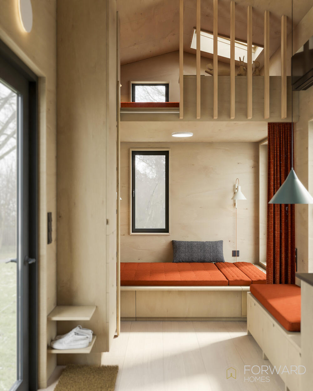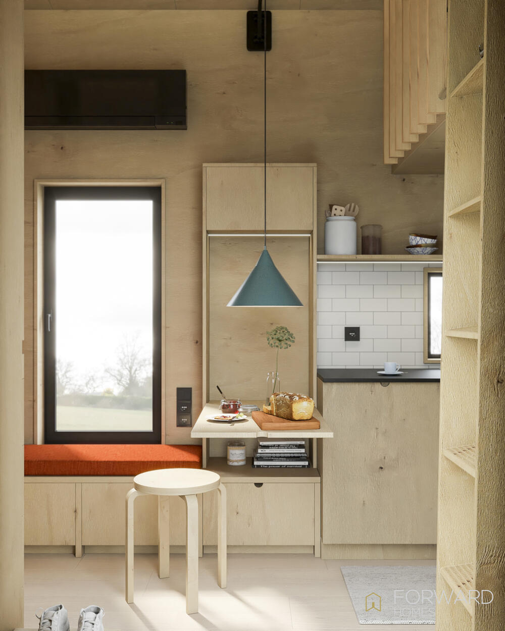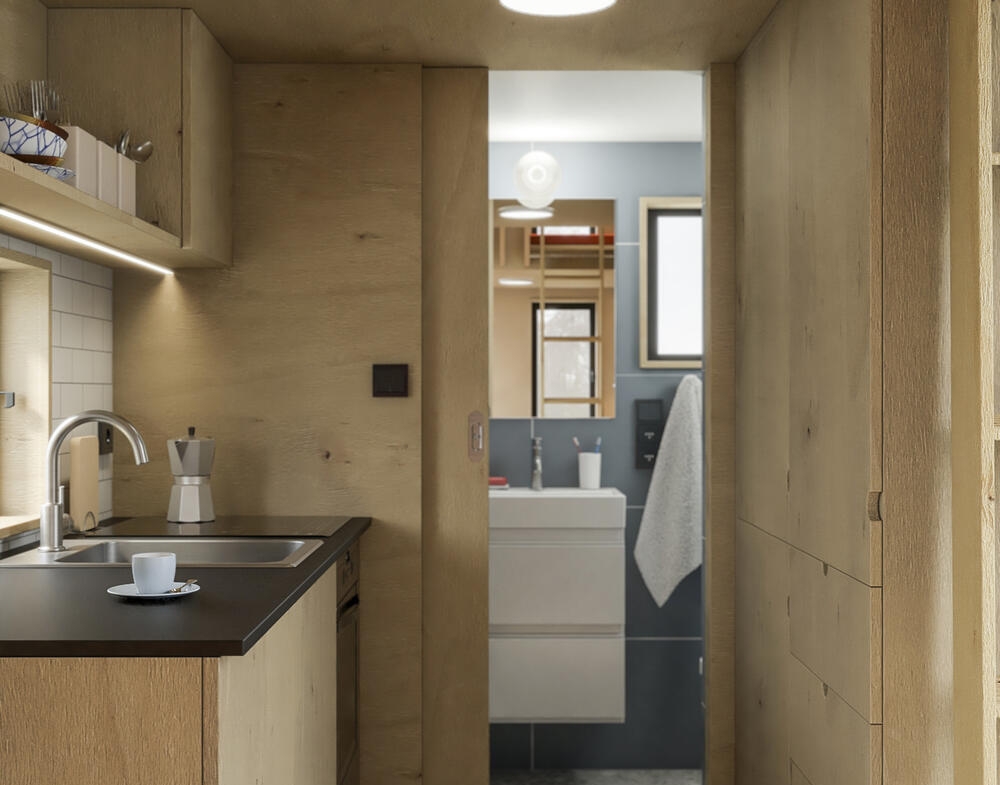 Ty es una casa diminuta construida por Forward Homes, un fabricante de casas prefabricadas con sede en Polonia. Esta casa prefabricada ofrece 17,6 m² de espacio habitable, con capacidad para 5 personas.