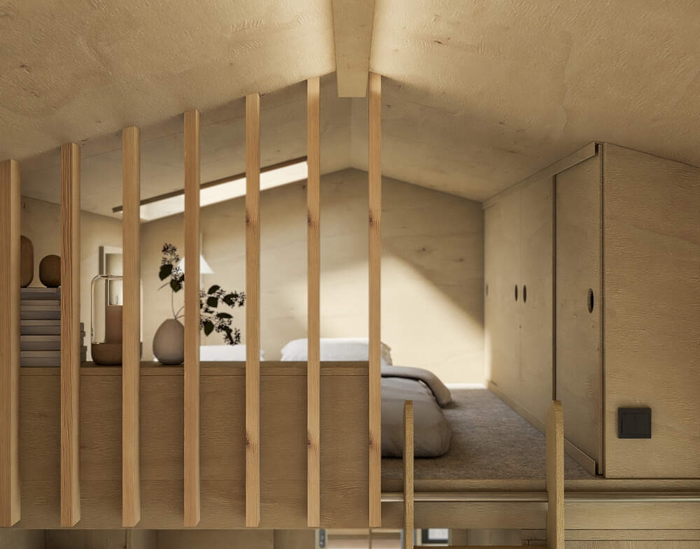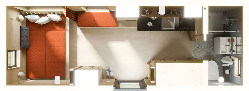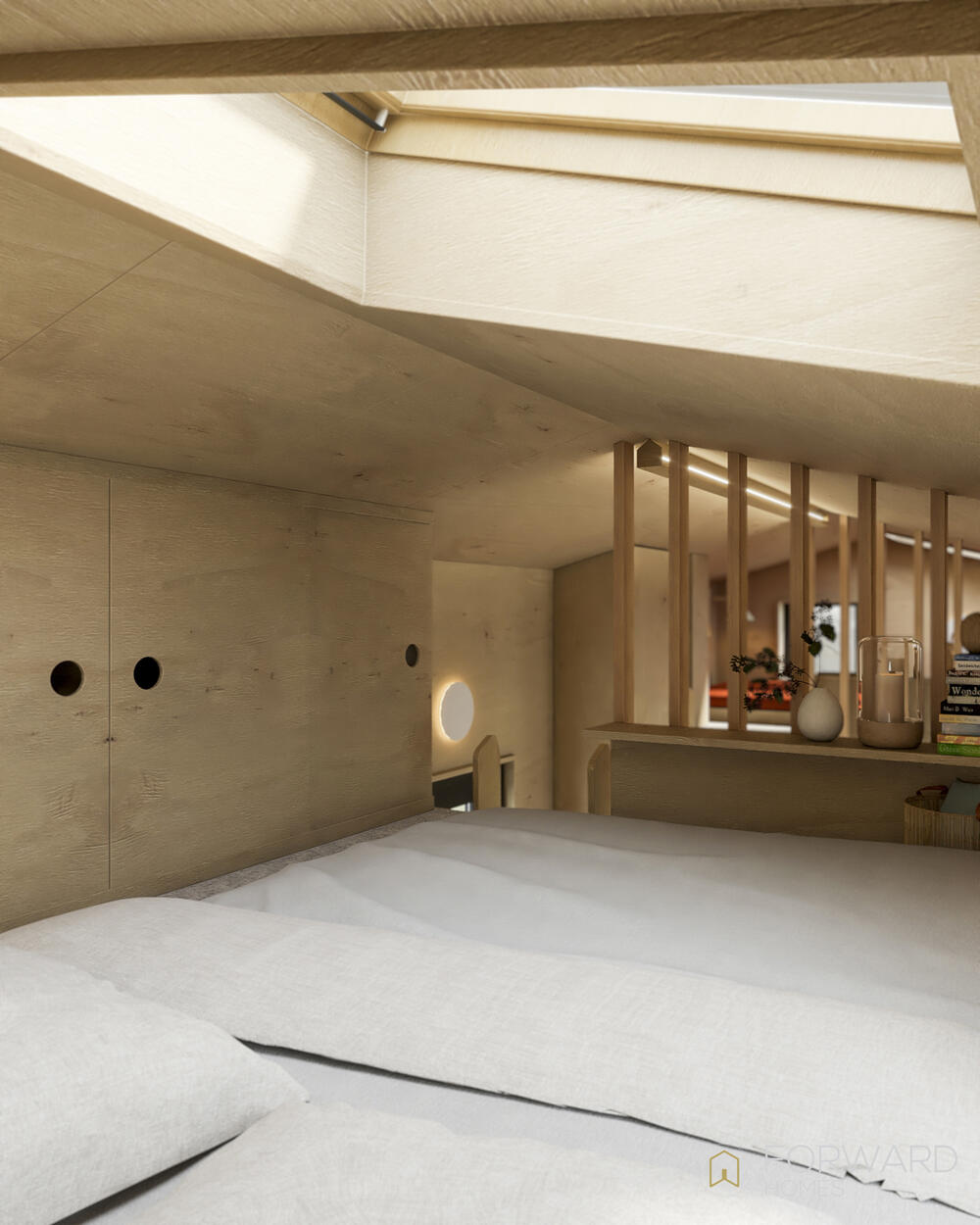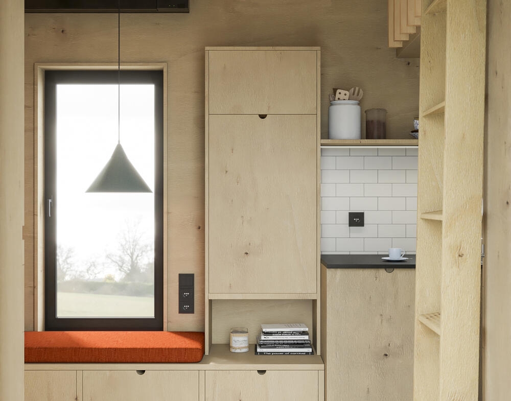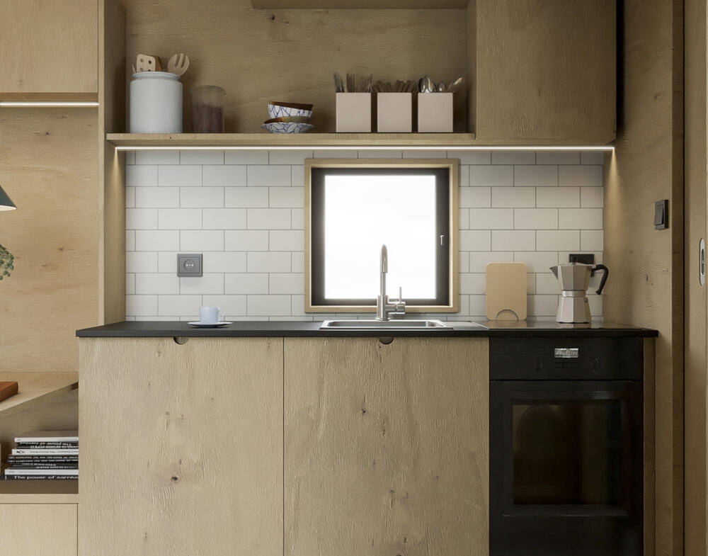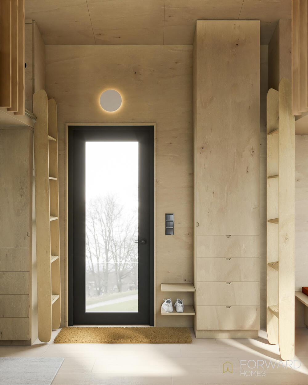 Ty es una casa diminuta construida por Forward Homes, un fabricante de casas prefabricadas con sede en Polonia. Esta casa prefabricada ofrece 17,6 m² de espacio habitable, con capacidad para 5 personas.