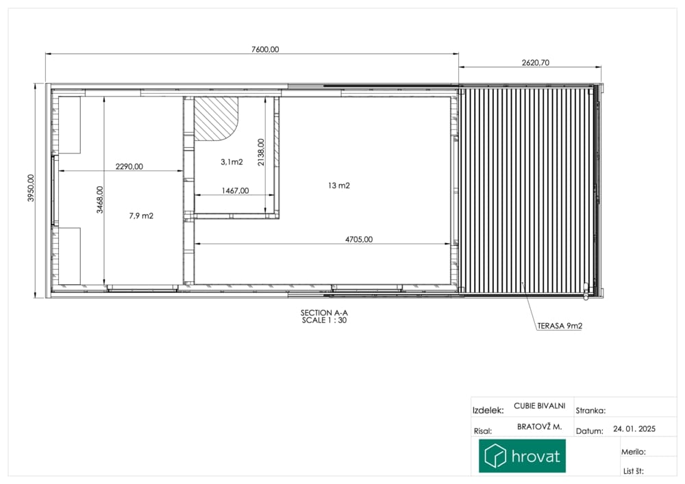 Aspen es una cabaña modular construida por Hrovat, un fabricante con sede en Eslovenia. Esta casa prefabricada ofrece 30 m² de espacio habitable, con un dormitorio y un cuarto de baño.