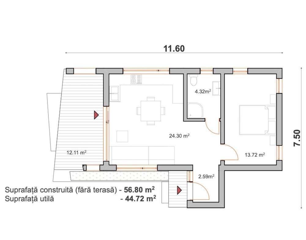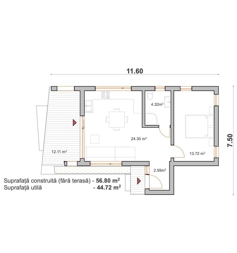 Modulo 56 es una cabaña modular construida por Modulo House, un fabricante de prefabricados con sede en Rumanía. Esta casa ofrece 56 m² de espacio habitable, con 1 dormitorio y 1 baño.