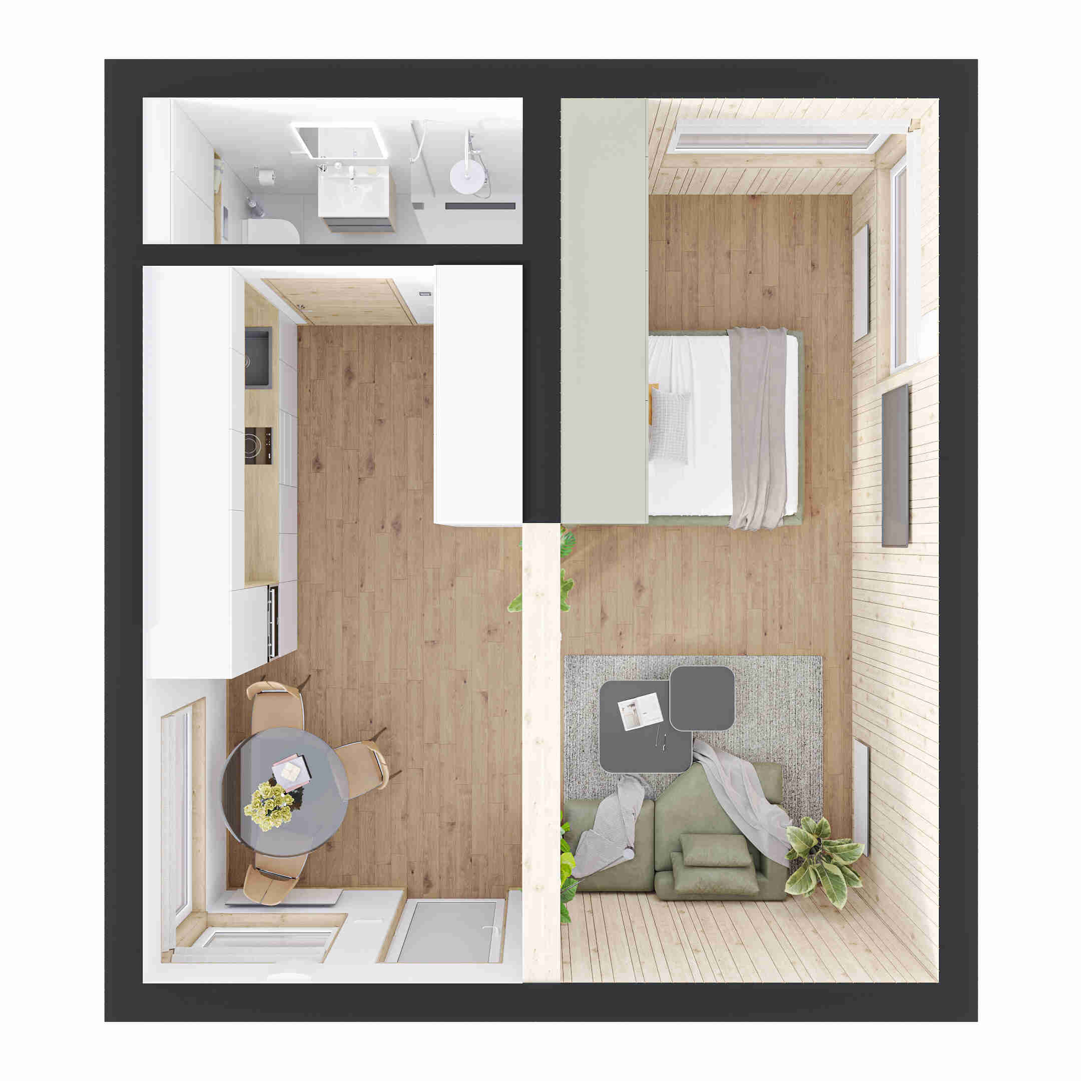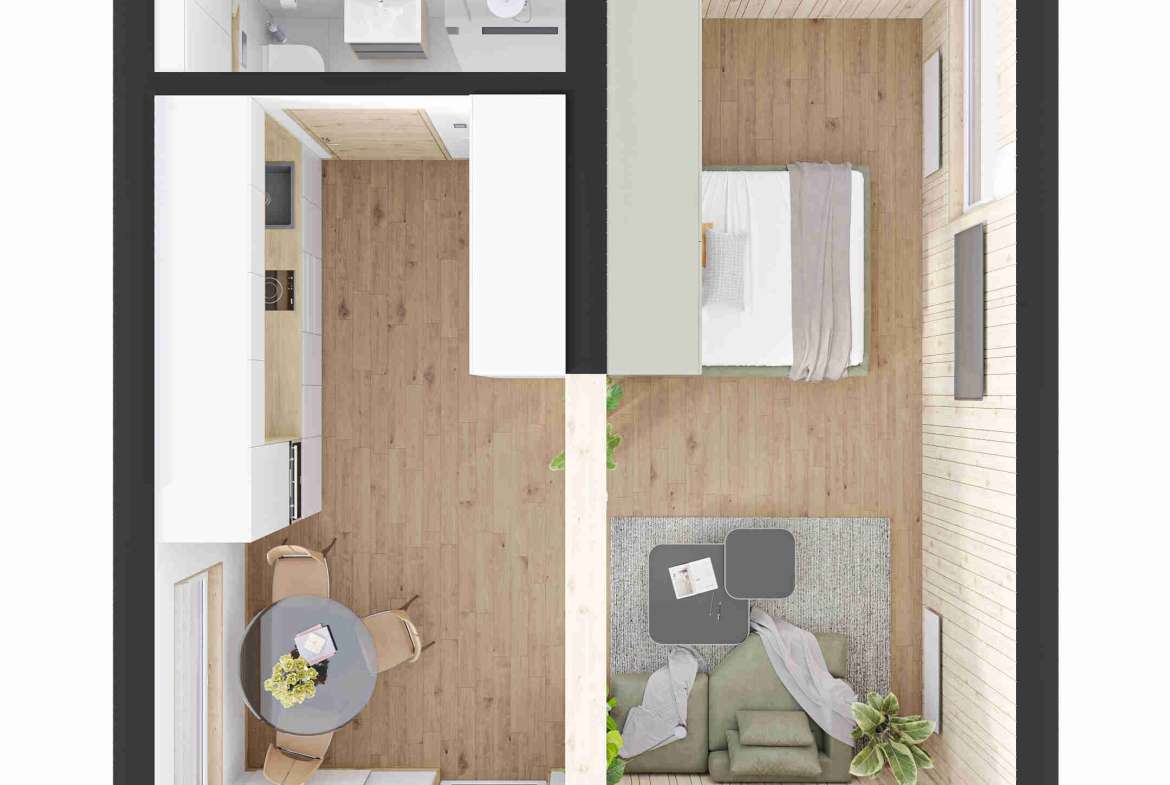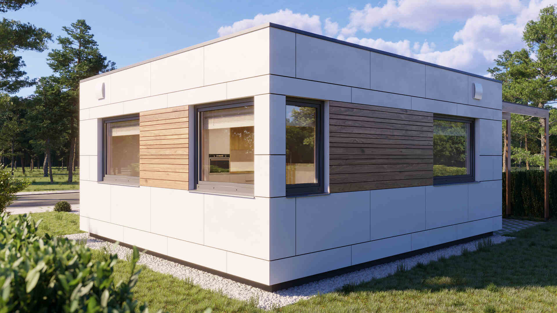 DUOMOD 39 es una casa modular construida por NOVA TEQ, un fabricante de prefabricados con sede en Ucrania. Esta casa modular ofrece 32 m² de espacio habitable con capacidad para 2 personas.