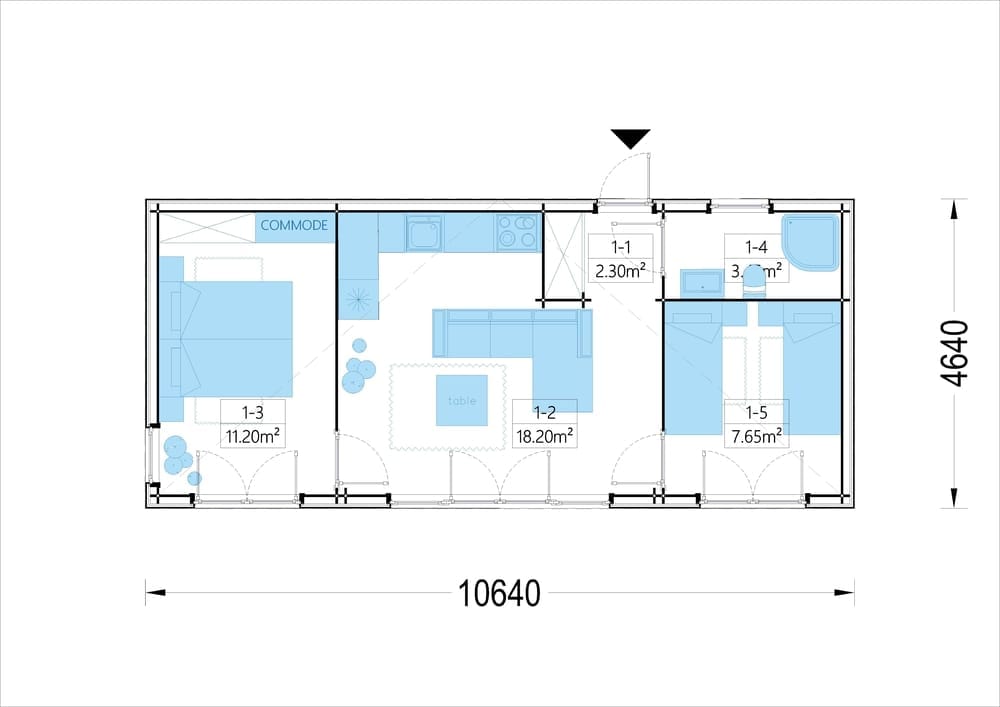 Prella es una prefabricada construida por Pineca GroupFabricante de prefabricados con sede en Lituania. Esta casa prefabricada ofrece 47 m2 de espacio habitable, con 2 dormitorios y 1 baño.