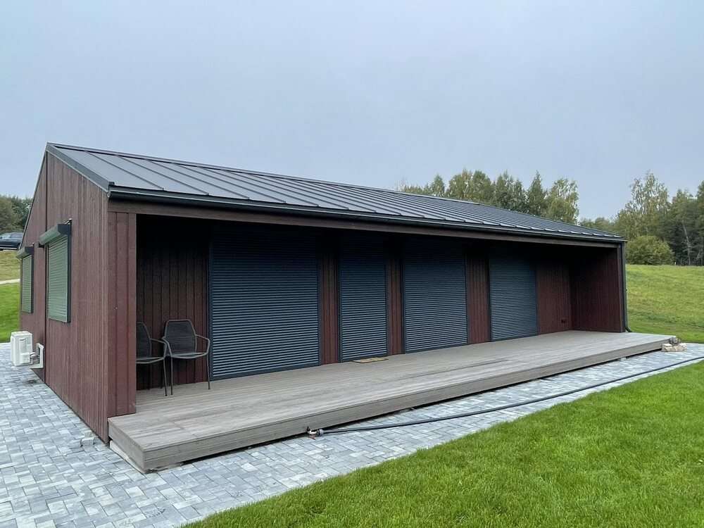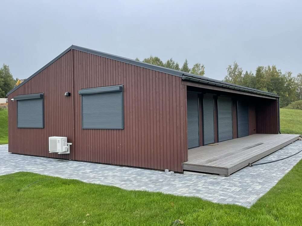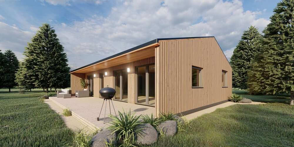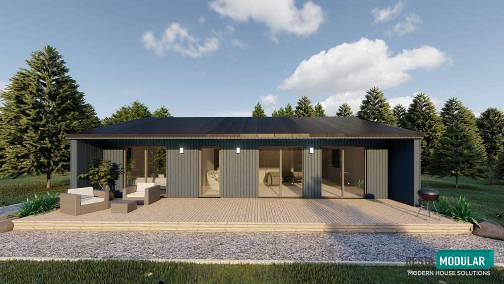 Modul 107 es una casa modular construida por Resta ES, un Fabricante de prefabricados con sede en Lituania. Esta casa modular ofrece 107 m² de espacio habitable con tres dormitorios y un cuarto de baño.