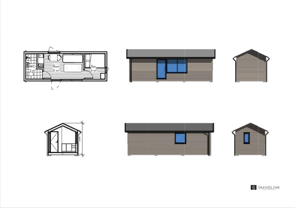 Sunne 25 es una cabaña modular construida por Skandlink, un fabricante de prefabricados con sede en Letonia. Esta Cabina modular ofrece 25 m² de espacio habitable con un dormitorio y un cuarto de baño.