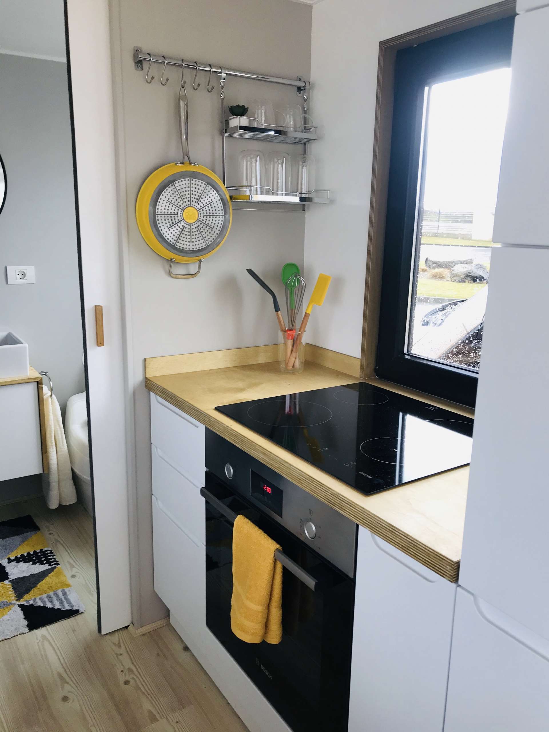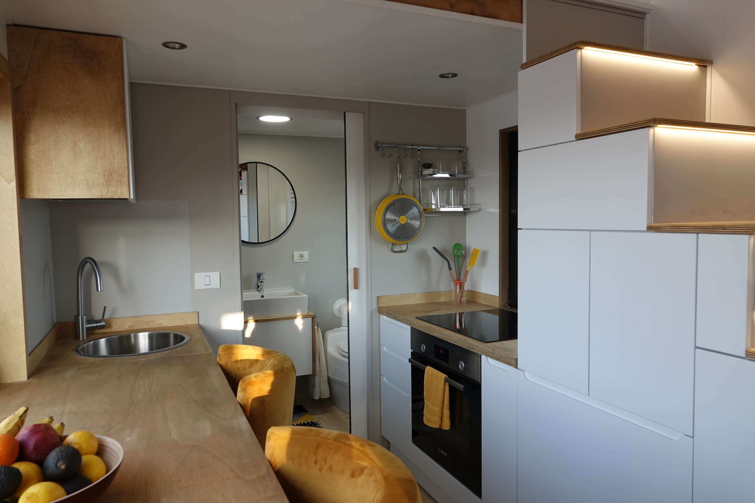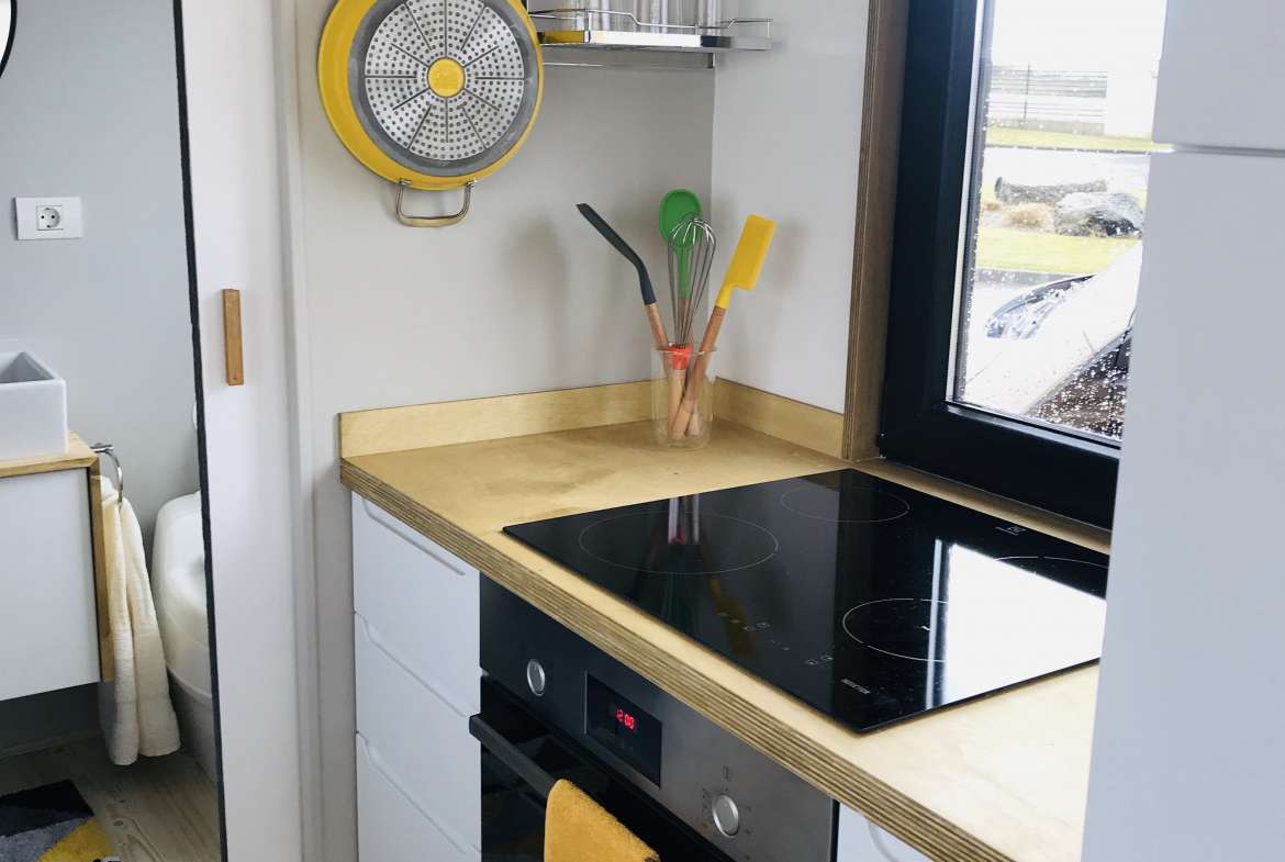 Equipamos cada Tiny house con fregadero, placa de cocina y horno. Además, nuestro cuarto de baño es espacioso y cómodo para cualquier estatura. ¡Todo es cuestión de Comfort!