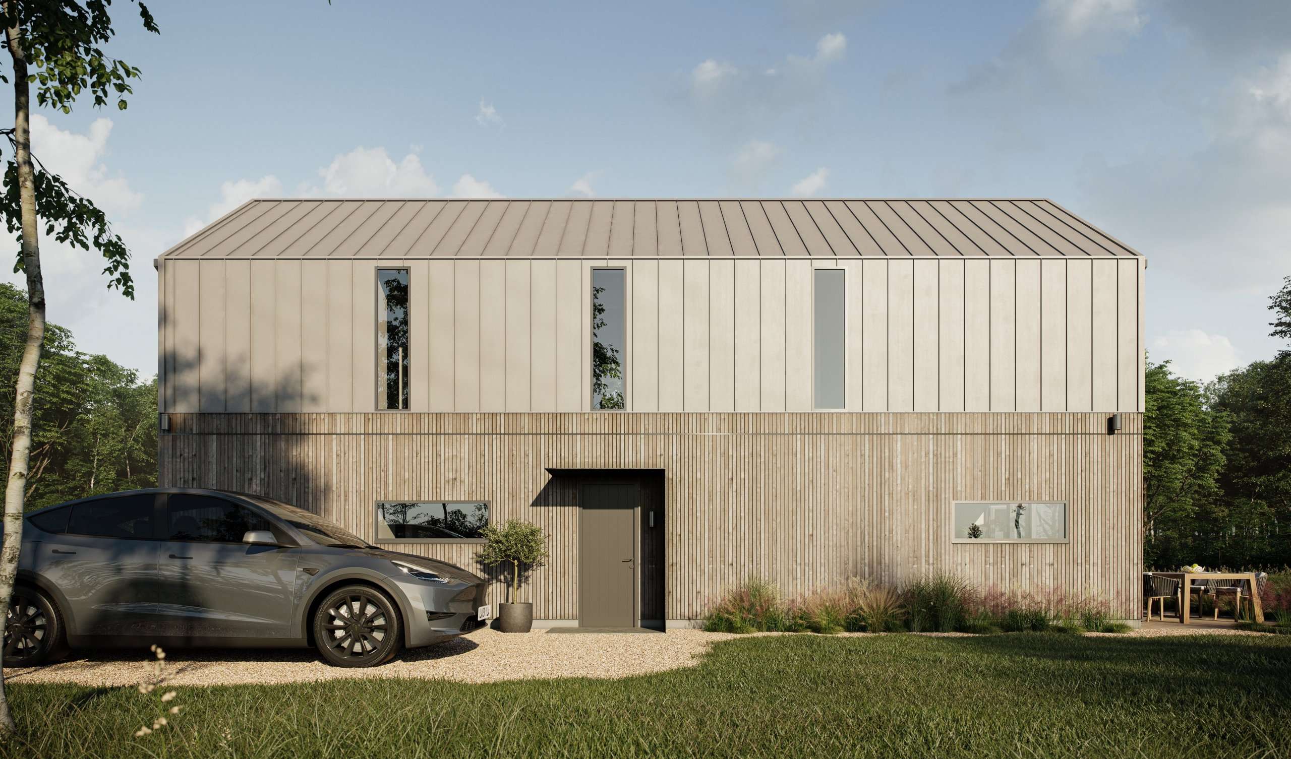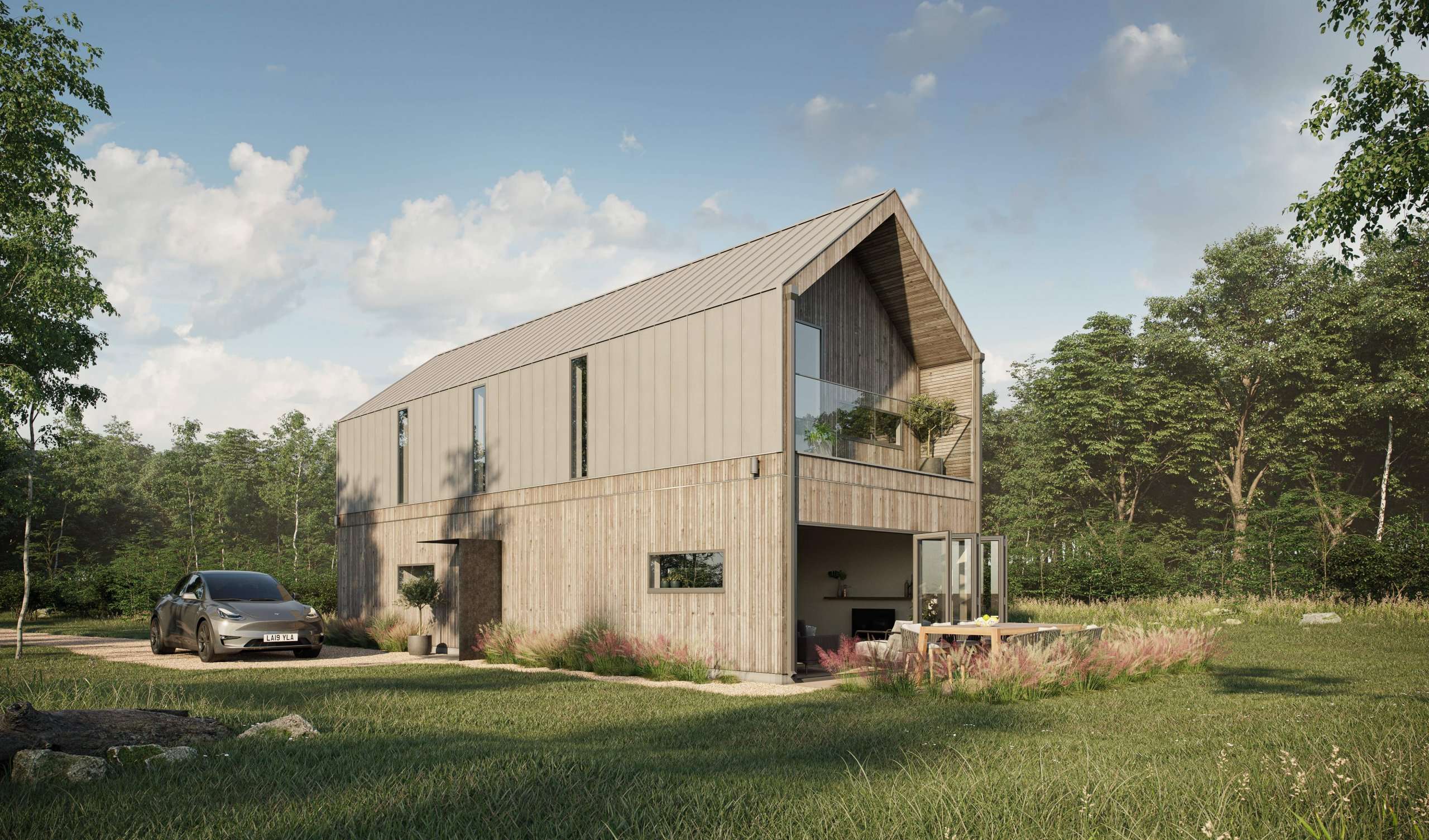The Barn House es una casa modular construida por Youngman Lovell, un fabricante de prefabricados con sede en el Reino Unido. Esta casa modular ofrece 110 m² de espacio habitable en dos plantas, con tres dormitorios y dos cuartos de baño. Ten en cuenta que el Fabricante tiene una cantidad mínima de pedido de 5 casas.