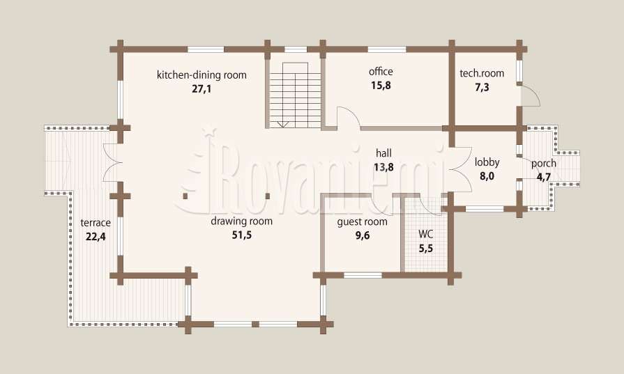 Inspiration est une maison en rondins construite par Aito Laplandun Fabricant de maisons basé en Finlande. Cette maison en rondins comporte quatre chambres et offre une surface habitable de 261,1 m² sur deux étages.