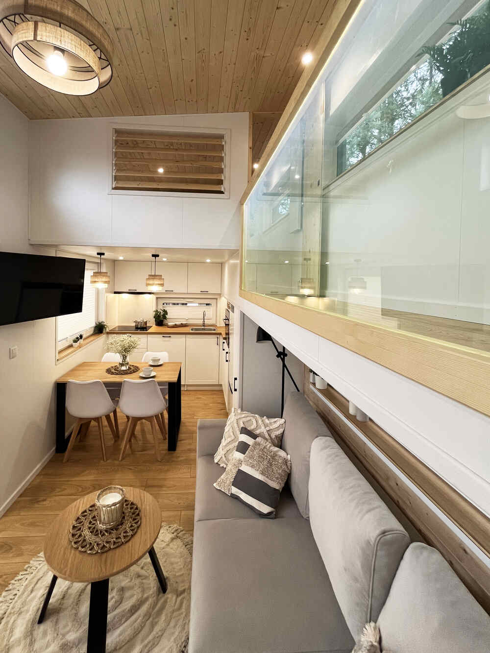 River est une Tiny house construite par Aurora Company, un Fabricant basé en Pologne. Cette Tiny house offre 31,9 m² d’espace de vie pouvant accueillir jusqu’à 4-6 personnes.