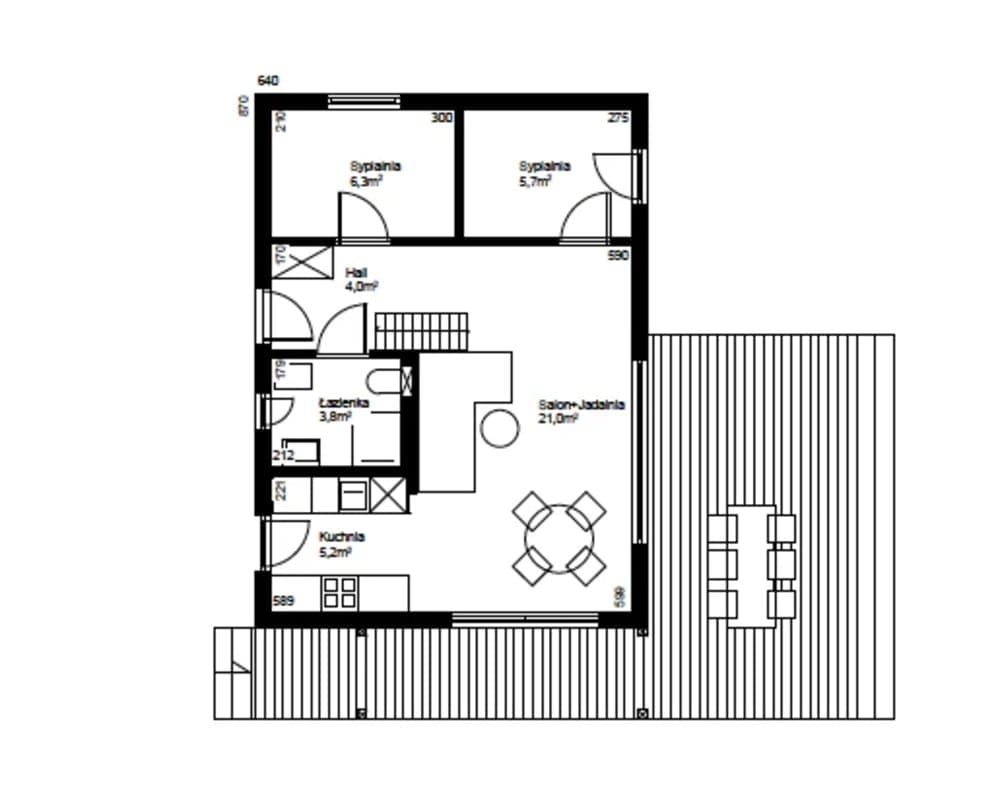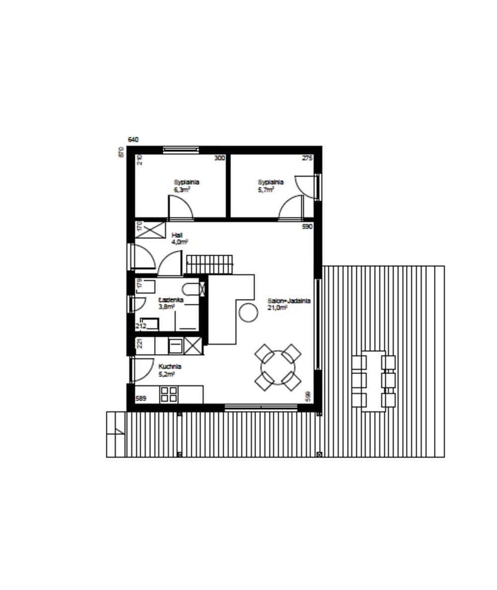 Dom Marysia 03 est une maison modulaire préfabriquée construite par Domki Marysia, un fabricant de préfabriqués basé en Pologne. Cette maison préfabriquée offre une surface habitable de 46 m², avec 2 chambres et 1 salle de bain.
