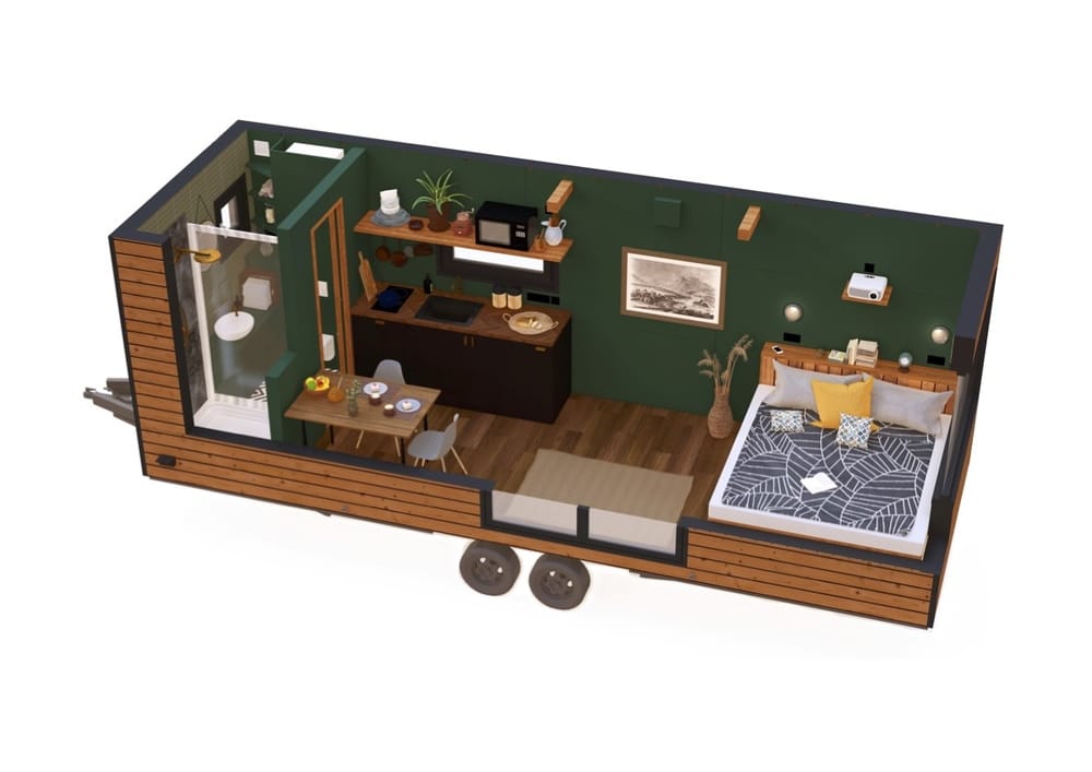 Tiny Amsterdam est une Tiny house construite par Eco Tiny House, un Fabricant basé en Roumanie. Cette Tiny house offre une surface habitable de 15,2 m² pouvant accueillir jusqu’à quatre personnes.