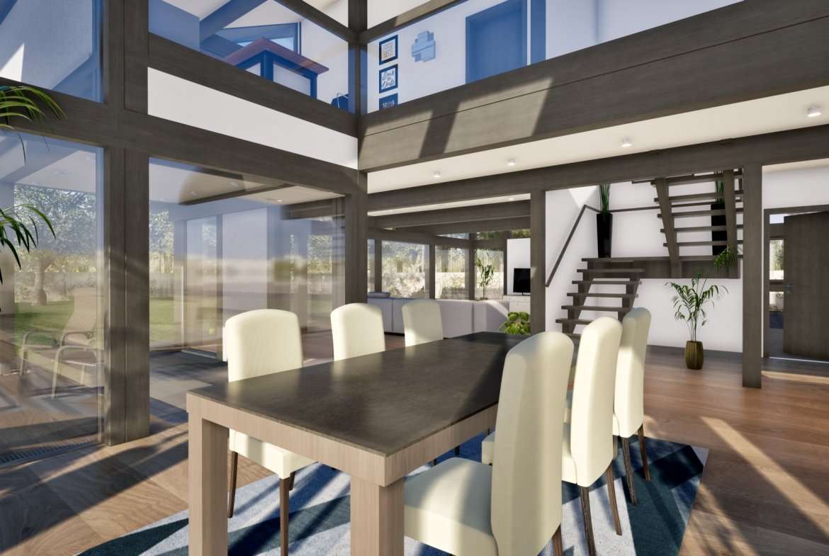 Vita Nova Edition 258 est une maison construite par Kager, un fabricant de préfabriqués basé en Slovénie. Cette maison en panneaux offre une surface habitable de 258 m² sur deux étages, avec deux chambres et deux salles de bains.