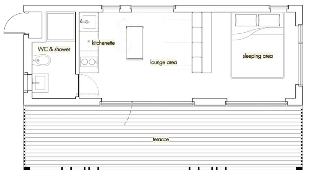 Konga M Extended est une cabine modulaire construite par Konga Cabins, un Fabricant de préfabriqués basé en Lituanie. Cette maison préfabriquée offre une surface habitable de 22 m², ce qui permet d’accueillir 4 personnes.