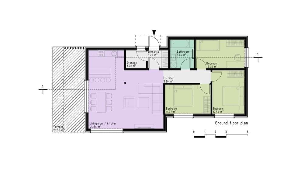 MH1 est une maison construite par Liskandas, un fabricant de préfabriqués basé en Lituanie. Cette maison en panneaux offre 149 m² de surface habitable avec 5 chambres et 2 salles de bains.