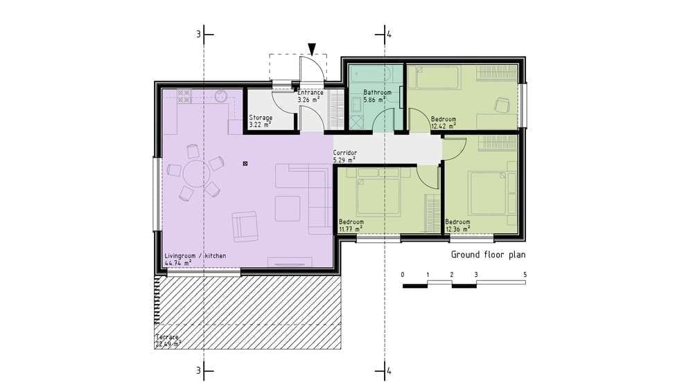 MH3 est une maison construite par Liskandas, un fabricant de préfabriqués basé en Lituanie. Cette maison en panneaux offre une surface habitable de 99 m² avec 3 chambres et 1 salle de bain.