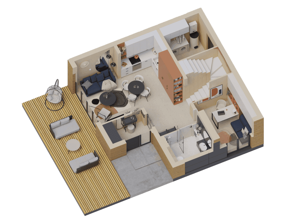 MOMO Dovre est une maison modulaire à deux étages construite par MOMO Development, un Fabricant de préfabriqués basé en Suède. Cette maison préfabriquée offre une surface habitable de 77 m², avec 2 chambres et 1 salle de bain.