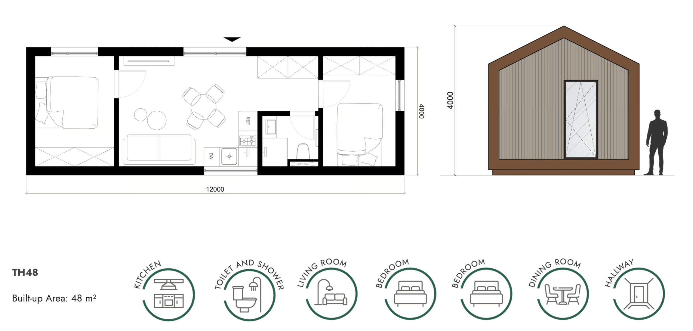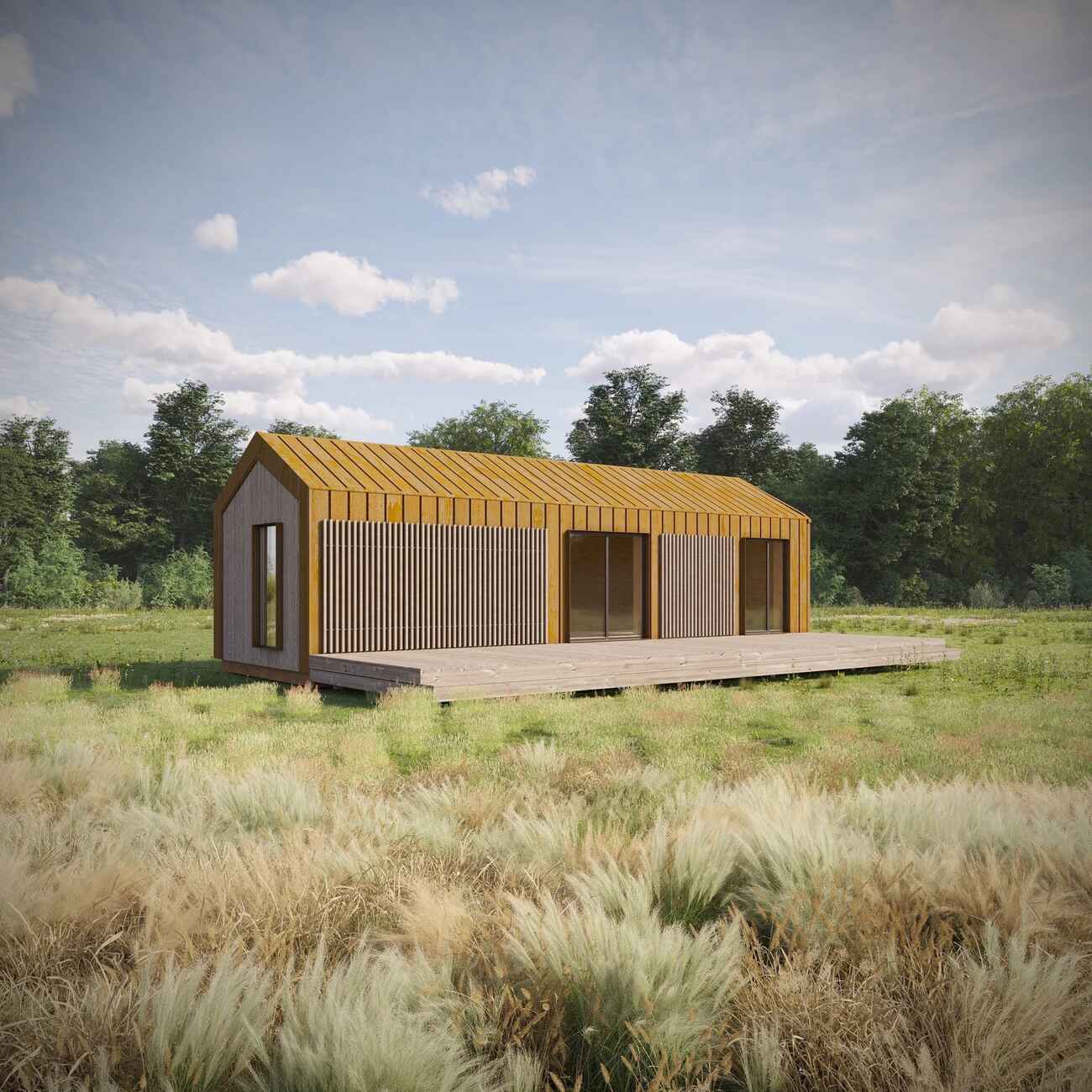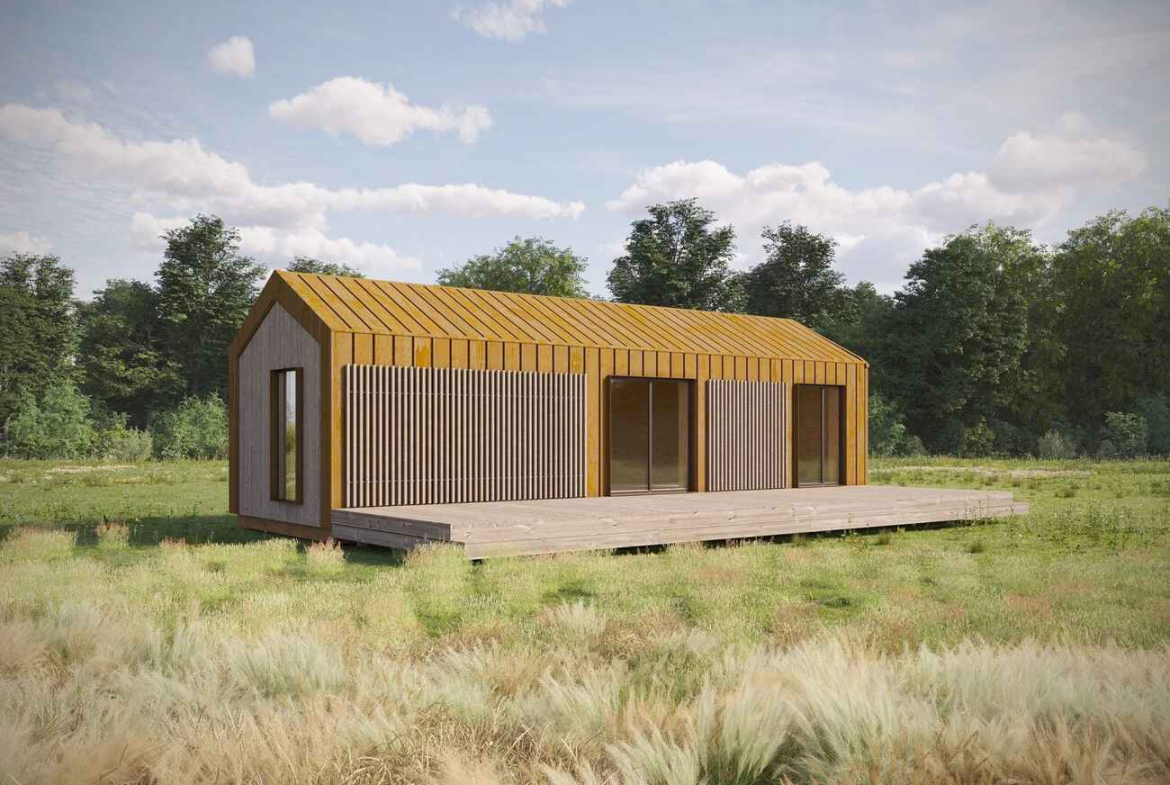 TH48 est une cabine modulaire construite par tutumHOUSE, un fabricant de préfabriqués basé en Lituanie. Cette cabane offre 48 m2 d’espace de vie, avec une chambre et une salle de bain.