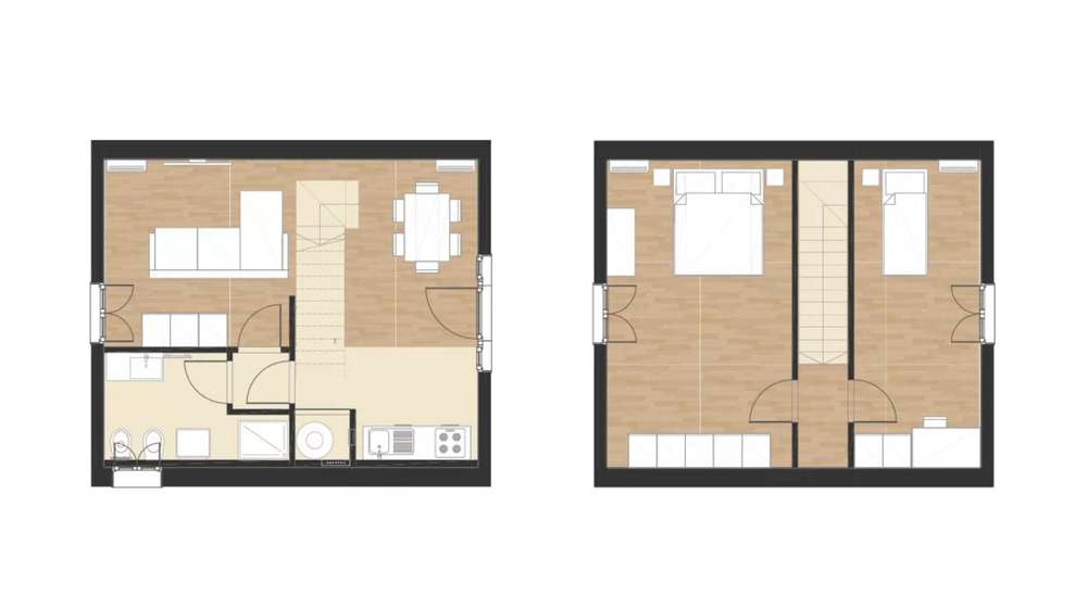 Model C – Young is a modular house built by A-FOLD, a prefab manufacturer based in Italy. This modular house provides 50 m² of living space over two floors, with two bedrooms and one bathroom.