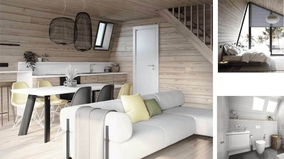 Model T – Family is a modular house built by A-FOLD, a prefab manufacturer based in Italy. This modular house provides 82.56 m² of living space over two floors, with three bedrooms and two bathrooms.