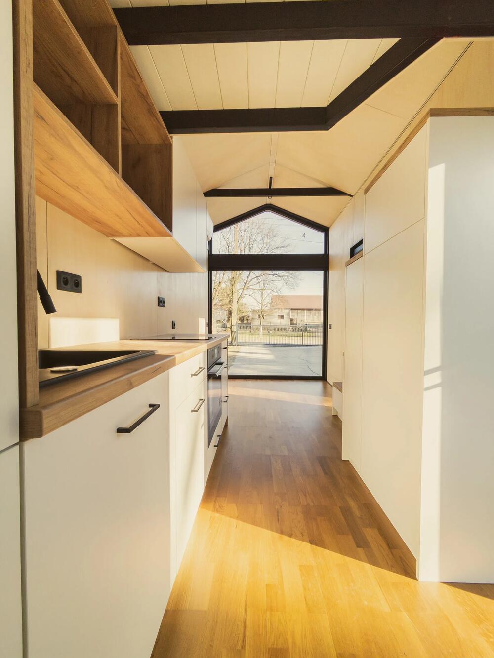 Tiny House 17 is a tiny house on wheels built by Aiger House, a prefab manufacturer based in Poland.