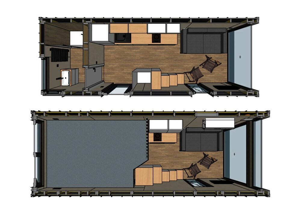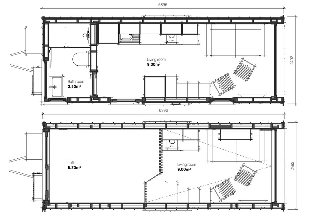 This prefab house provides 17 m² + 5.3 m² loft of living space which can accommodate 4 people.