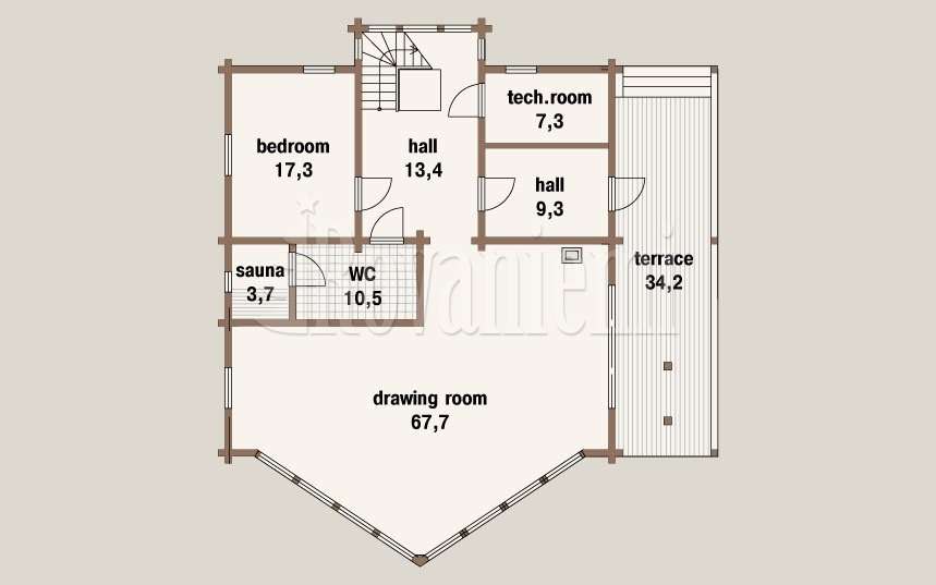 Flagship is a log house built by Aito Lapland, a house manufacturer based in Finland. This log house has three bedrooms and provides 244.6 m² of living space over two floors.