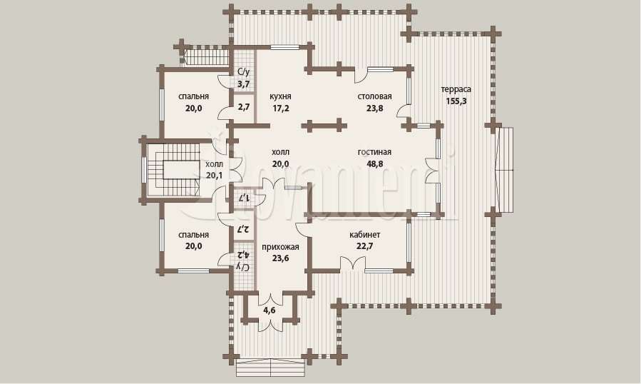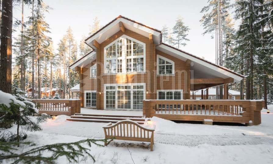 Helios is a log house built by Aito Lapland, a house manufacturer based in Finland. This log house has six bedrooms and provides 501.5 m² of living space over two floors.
