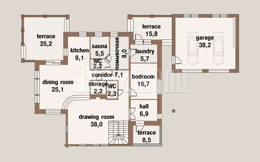 Sun House is a log house built by Aito Lapland, a house manufacturer based in Finland. This log house has four bedrooms and provides 282.3 m² of living space over two floors.